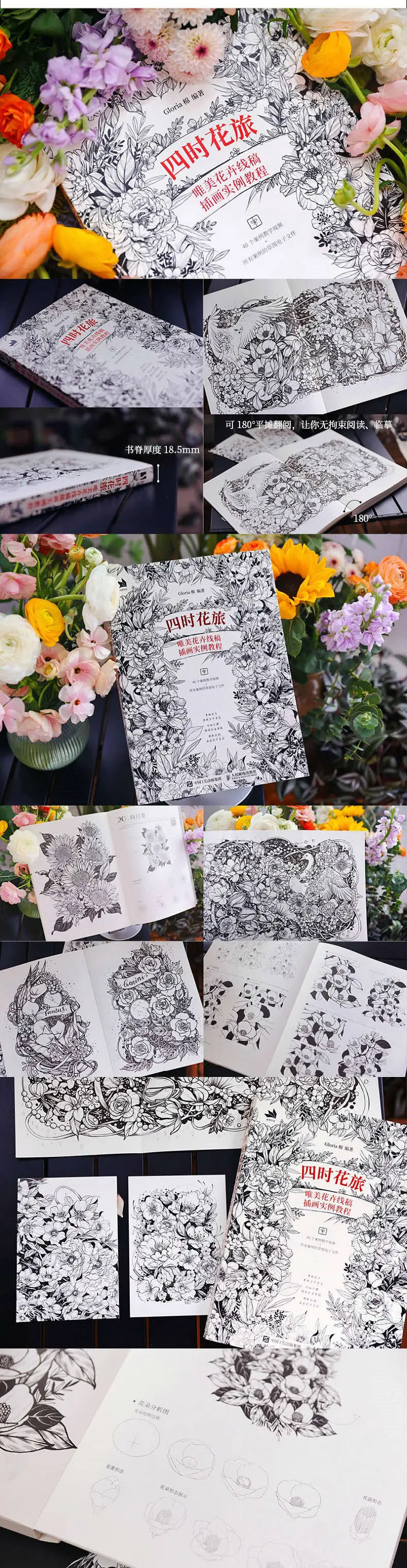 Красивая Цветочная линия рисунок иллюстрация пример учебник книги черно-белая линия черновик ручная роспись профессиональные навыки