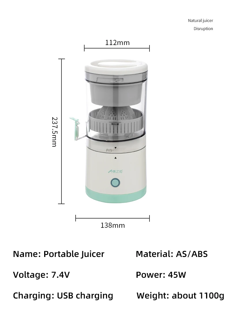 Беспроводная медленная соковыжималка оранжевая лимонная соковыжималка USB перезаряжаемая соковыжималка для фруктов портативная соковыжималка для дома