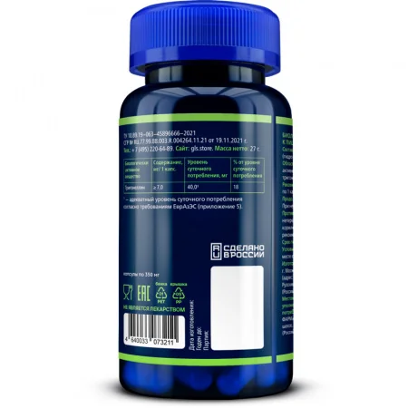 Использование и дозировка взрослым по 1 капсуле в день во время еды Спецификация продукта Банка 60 капсул Срок годности 3 года с даты изготовления (см. на упаковке) Название бренда GLS pharmaceuticals Происхождение Россия Сертификация Европейский сертификат соответствия Пол Унисекс Количество капсул/таблеток 60 Возрастные ограничения 18+внешний вид товара