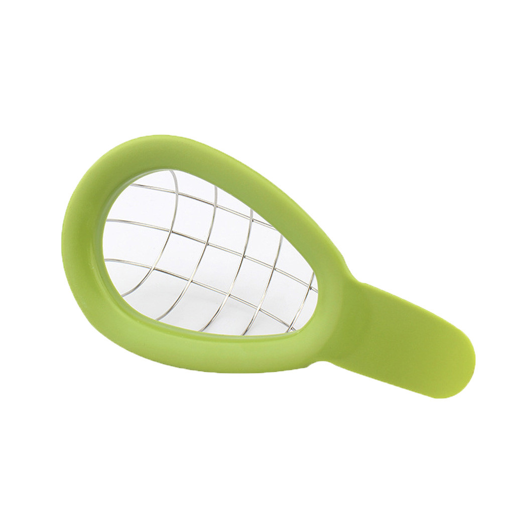 Возьмите авокадо, нарежьте пополам, Наполовину наполовину надавите на нержавеющую сетку и поверните, чтобы получить Отличные кубики авокадо каждый раз.
