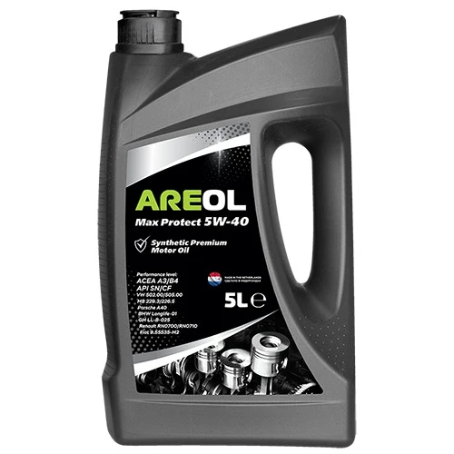 AREOL Max Protect 5W-40 (5L) масло моторное синтетика ACEA A3/B4 / API SN/CF / VW 502.00 / 505.00 / MB 229.3 / масло для рено / масло для фольцваген / масло для мерседес / масло на рено / масло на шкоду / масло для шкоды