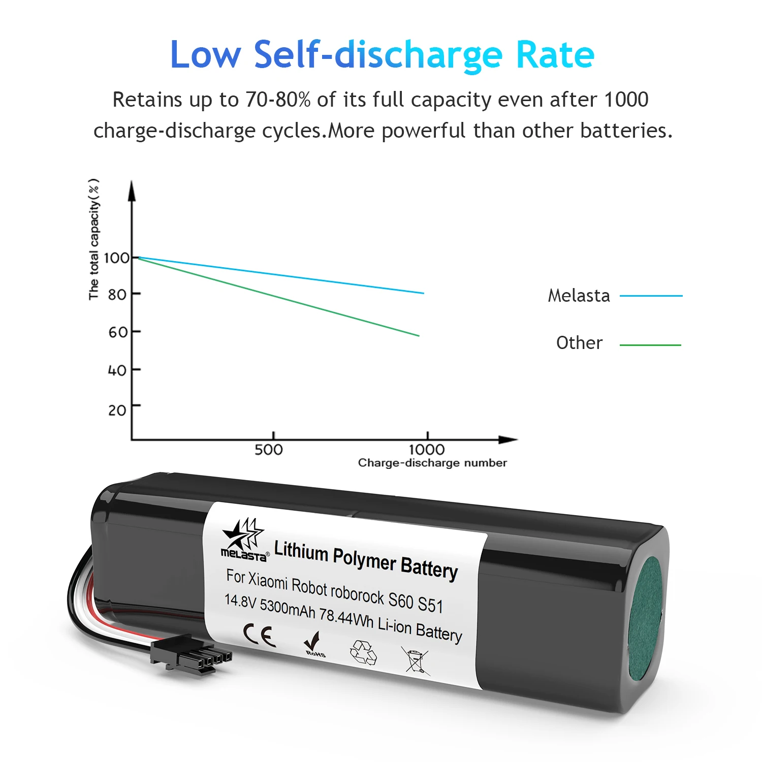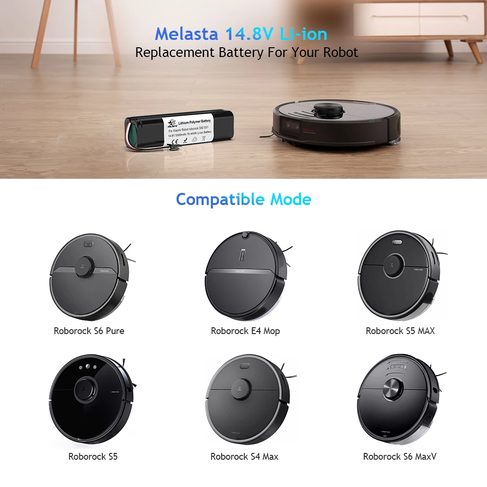 Melasta 14,8 V 5300mAh литиевая сменная батарея для Mi Robot Mijia 1st и 2nd Roborock S50 S51 S52 S53 T6 робот-пылесос