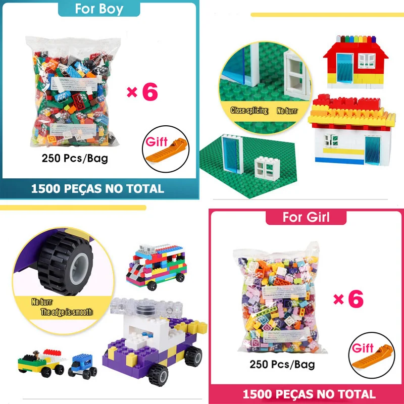 Набор игрушечных строительных блоков: ( 250 шт/500 шт/750 шт/1000 шт/1500 шт)