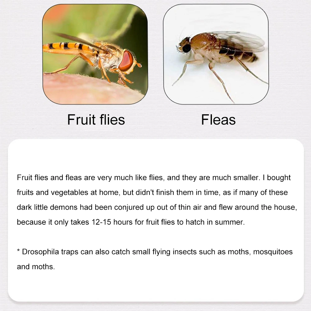 * 1. Безопасный и безвредный: крытая ловушка для фруктов безопасна, многоразовая и экологически безопасна. Вы можете использовать приманка-корм на кухне, гостиной, баре или супермаркете.