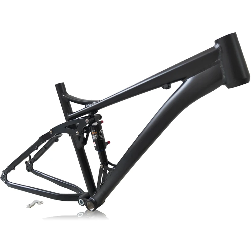 Эта рамка 6061 алюминиевый сплав, вес около 3,4 кг, может держать 26*2,3 дюймов шины с 165 мм воздуха задняя подвеска