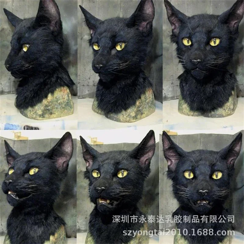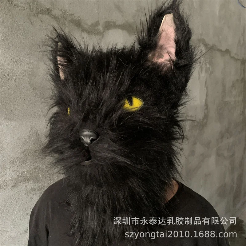 Черная маска для кошки с волосками, костюм на Хэллоуин, вечерние, новинка, голова животного, резиновая маска с латексом