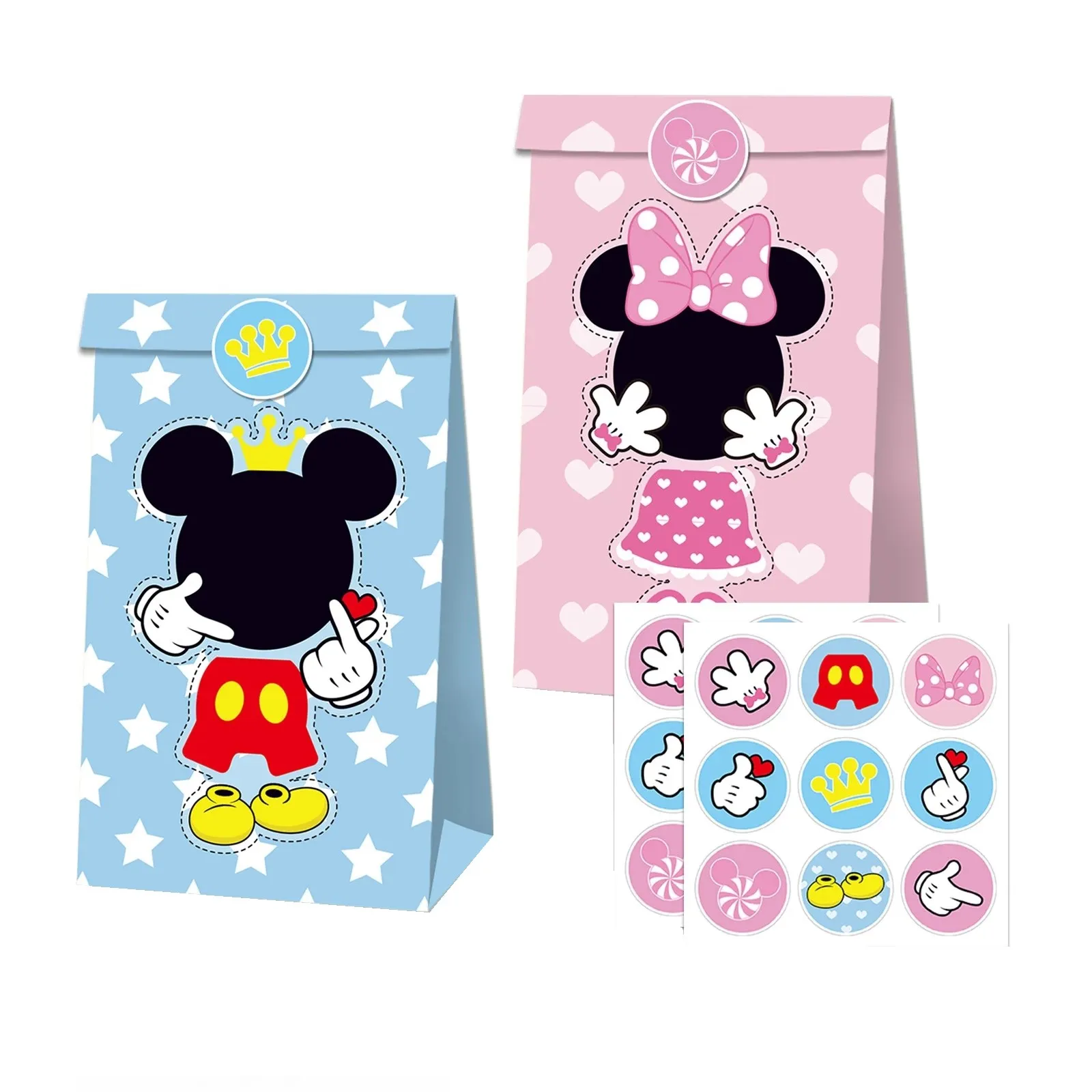 12pcs Disney Mickey Minnie Mouse Party Paper Gift Bag Candy Treats Box For Kids Baby Shower Supplies Birthday Party Decoration