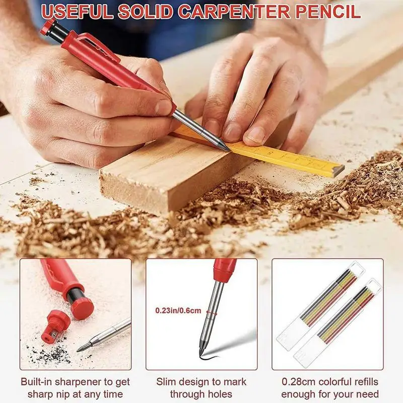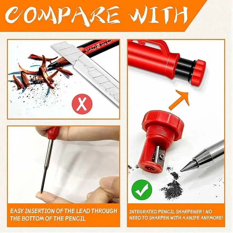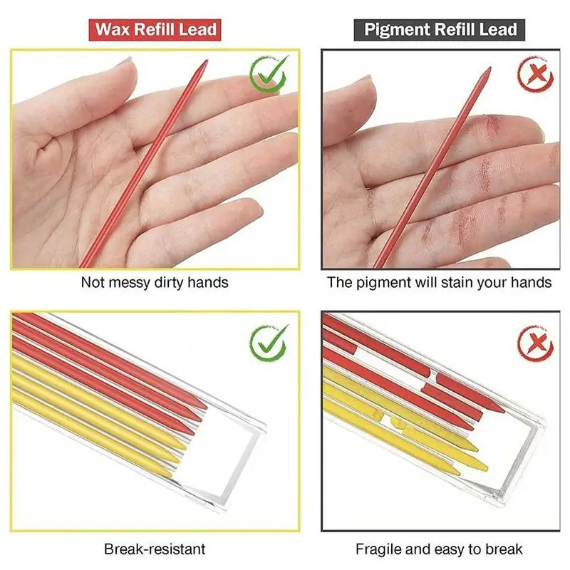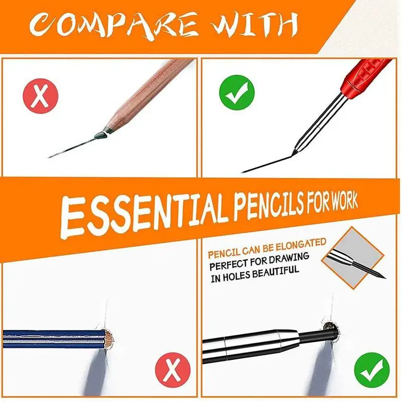 3. Механический карандаш: Карандаш Плотника не соскальзывает пальцы с карандаша и повторные следы уменьшат боль; Дизайн зажима ручки можно легко повесить на сумку, легко использовать и не легко потерять, повышение эффективности, подходит для строительства и масонов