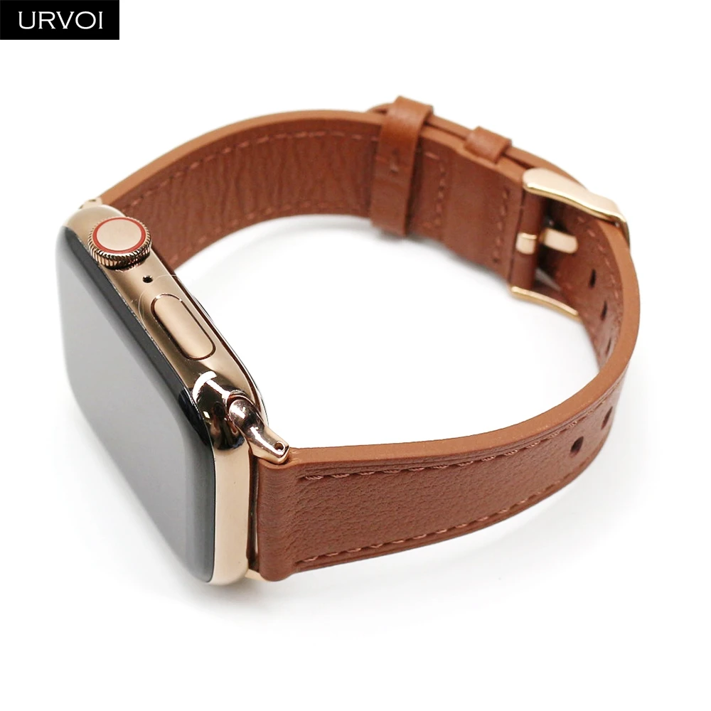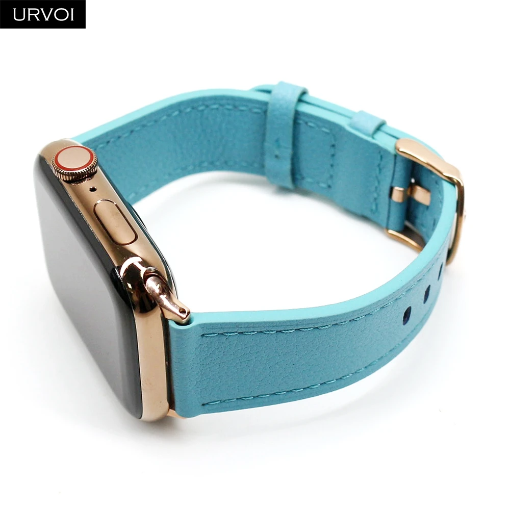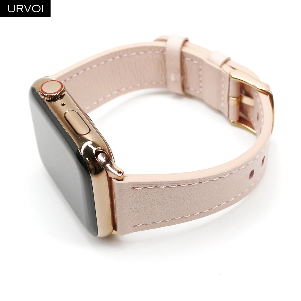 Ремешок URVOI для Apple Watch series 7 6 SE 5432, ремешок из натуральной кожи для iWatch, адаптеры из розового золота, пряжка на запястье, стильный, 41 мм, 45 мм