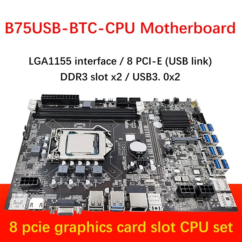 B75 8 материнская плата для майнинга карт + CPU + USB3.0 19/20Pin адаптер 8 USB3.0 слот GPU LGA1155 2X DDR3 RAM слот SATA3.0 для BTC/ETH