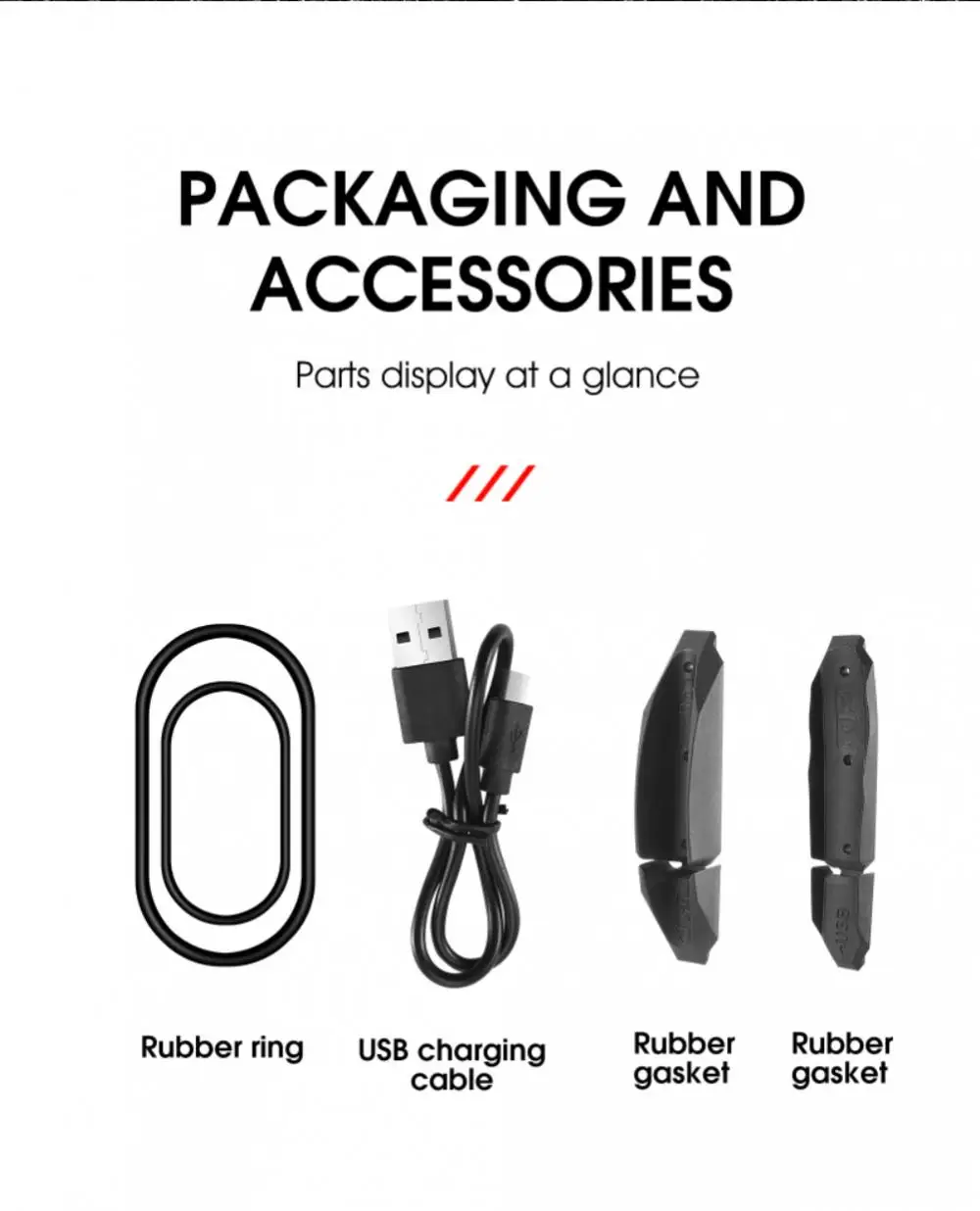 1 * резиновое кольцо, 1 * кабель для передачи данных, 2 * резиновая прокладка, 1 * задний фонарь/1 * резиновое кольцо, 1 * кабель для передачи данных, 1 * резиновая прокладка, 1 * задний фонарь