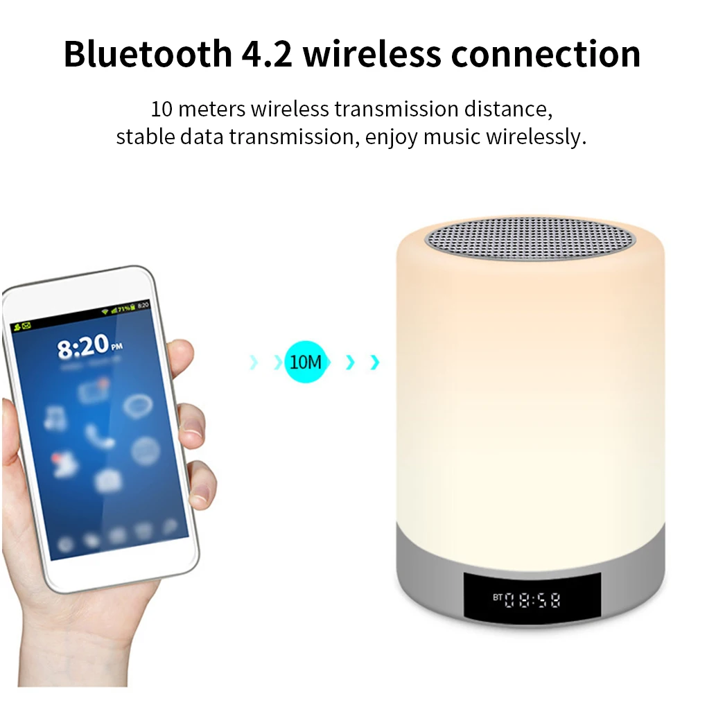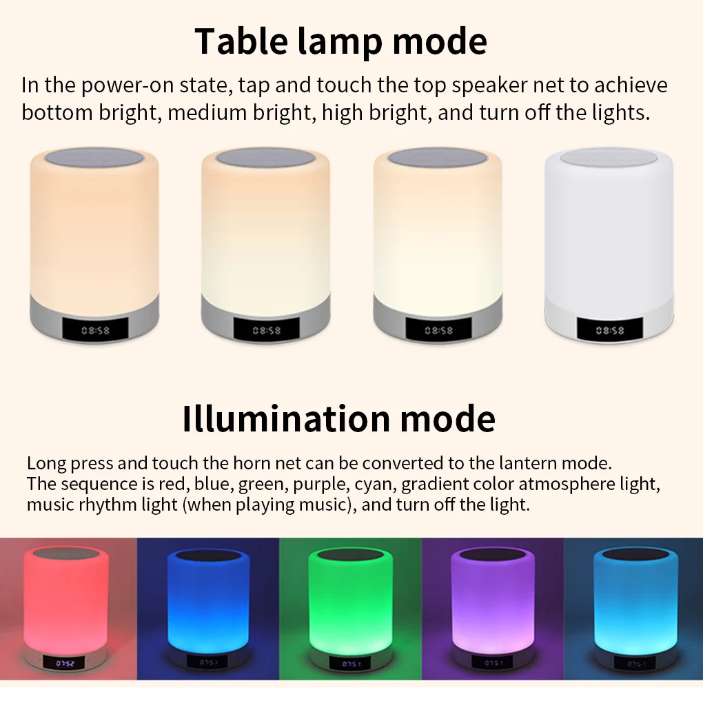 Динамик будильника имеет функцию синхронизации: его можно отключить в течение 20 минут, 40 минут и 60 минут. Цветной ночник-светильник поддерживает функцию fm-радио, одноклавишный поиск станций, простое управление.
