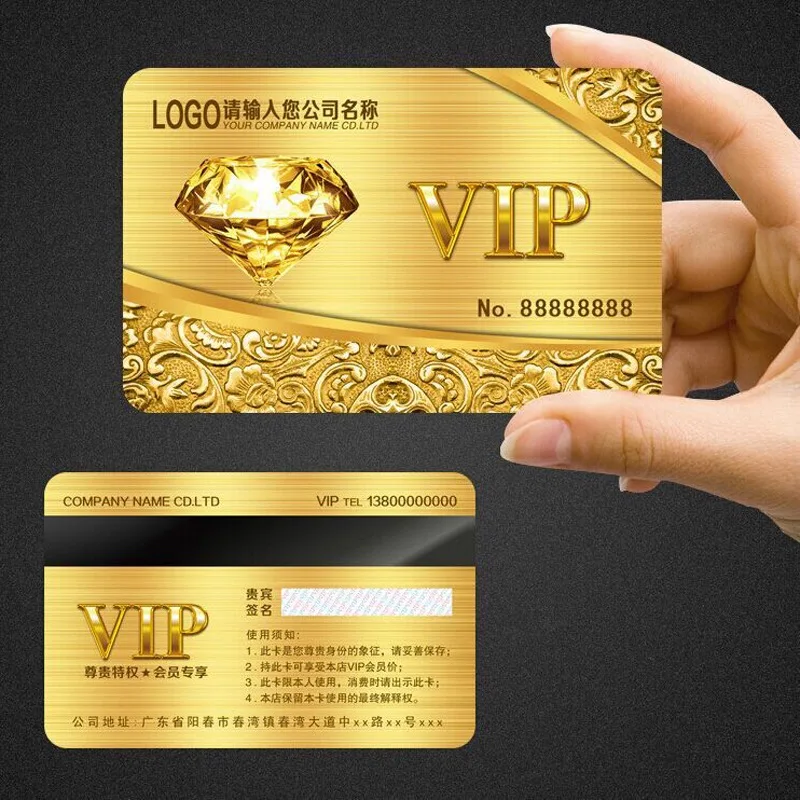 200 шт. ПВХ пластиковая Визитная карточка на заказ VIP Кредитная карточка с принтом логотипа Золотой выпуклой штрих-код водонепроницаемый с обеих сторон печать