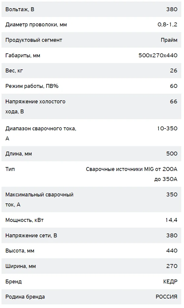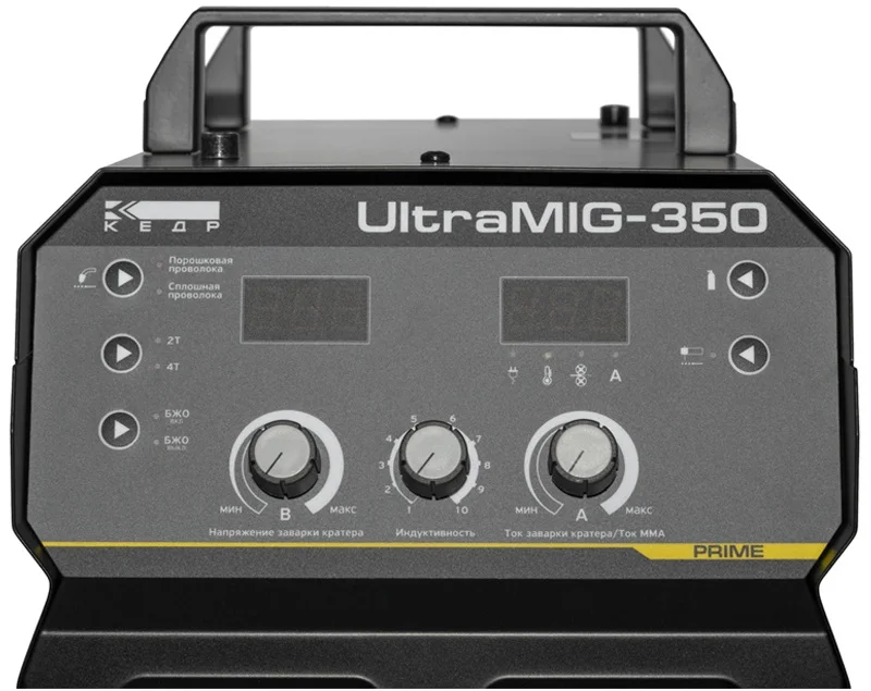 Источник сварочный КЕДР UltraMIG-350 (380В, 10-350А) - промышленный источник питания для производительной и высококачественной механизированной сварки, работающий совместно с компактным 4-роликовым механизмом подачи проволоки открытого и закрытого типа. Этот источник подходит для работы в различных отраслях промышленности как в цеховых условиях, так и на монтажных площадках. Благодаря удобству и простоте панели управления источника, сварщик с легкостью может подобрать необходимый режим сварки под конкретную задачу кратчайший срок. Источник питания КЕДР UltraMIG-350 имеет высокую степень защиты от пыли и влаги, что позволяет использовать в неблагоприятных монтажных условиях.