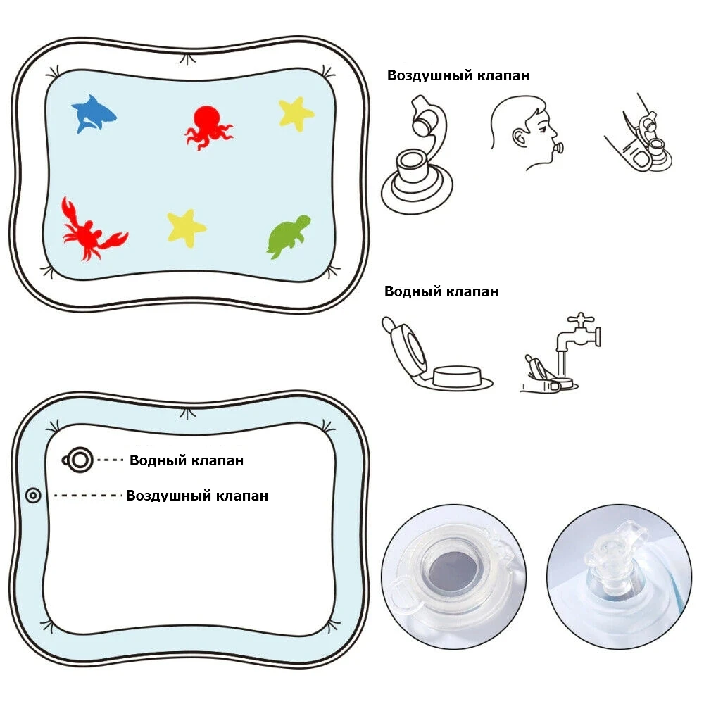 На рынке игрушек развивающих игрушек появилась интересная новинка – развивающий водный коврик для малышей. Его идея удивительно проста. В прозрачном ПВХ материале плавают в воде разноцветные фигурки в форме рыбок и других обитателей водного мира, которые ребенок может заставить передвигаться, нажимая или толкая их рукой.Развивающий водный коврик для малышей очень понравился мамам и развивающий коврик стал бестселлером в России.Что представляет собой водный развивающий коврик?Детская игрушка – водный развивающий коврик для малышей представляет собой надувное изделие с прозрачной поверхностью. Оно имеет разделение на несколько независимых друг от друга отсеков. На обратной стороне имеются клапаны.