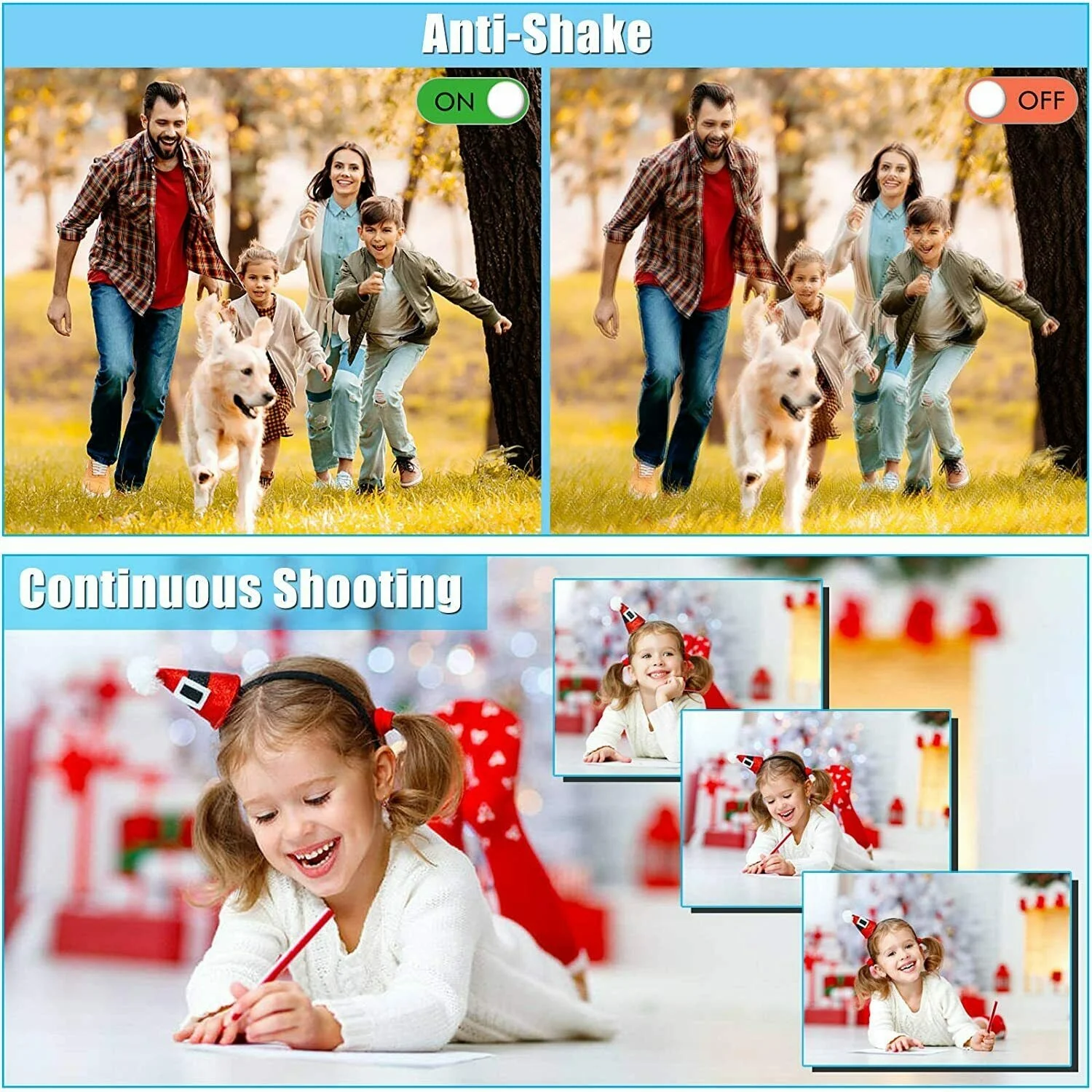 16x цифровой зум и 2,88 "ips экран эта портативная камера имеет 16x цифровой зум, который имеет возможность получить более четкое представление о отдаленных предметах и запечатлеть детали, которые вы хотите. Кроме того, цифровая камера оснащена ips-экраном 2,88 дюйма, что позволяет даже пожилым людям легко просматривать фотографии/видео.