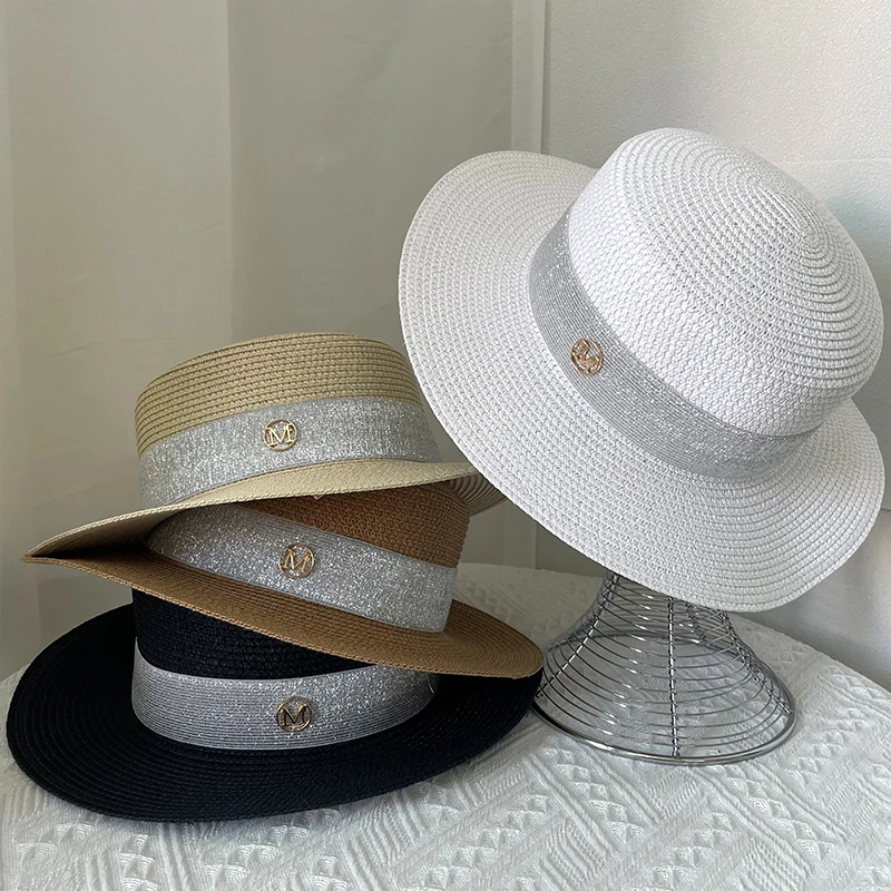 Шляпа для женщин, летняя плоская шляпа от солнца, Пляжная Панама, соломенная шляпа с большими полями, защита от ультрафиолета