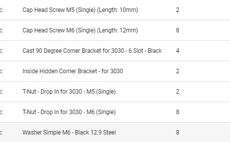 400x400 мм наборы:3030 ЕС T алюминиевого сплава рельсы :( серебро или оксид черный)6 шт 3030-540 мм2 шт 3030-605 мм2 шт 3030-653 мм2 шт 3030-264 мм2 шт 3030-261 мм Держатель катушки:1 шт. 3030-234 мм1 шт 3030-87 мм Винт и гайки: