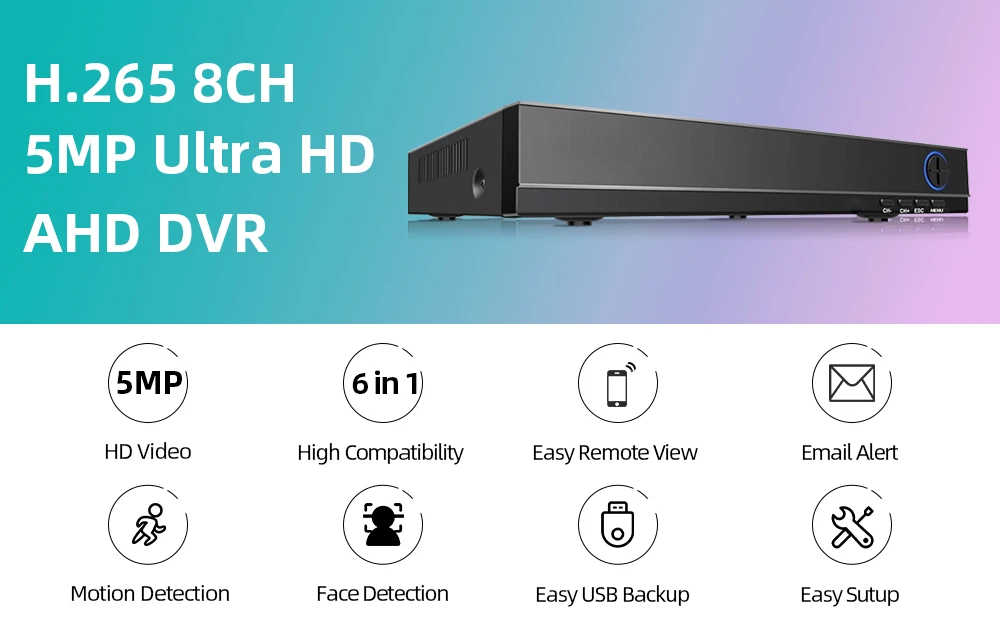 1 X H.265 8CH 5.0MP 6 IN 1 AHD DVR Hybrid Digital Video Recorder