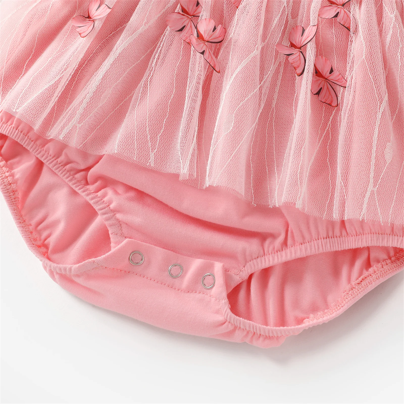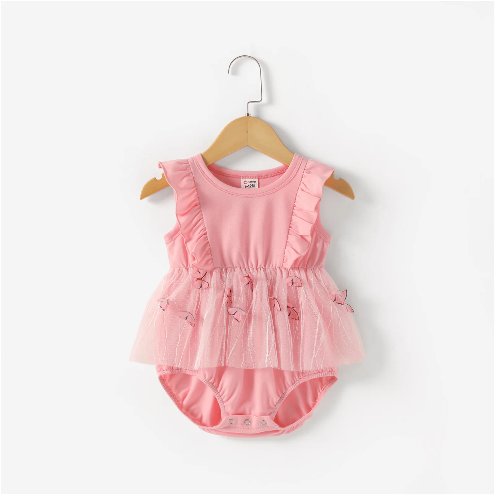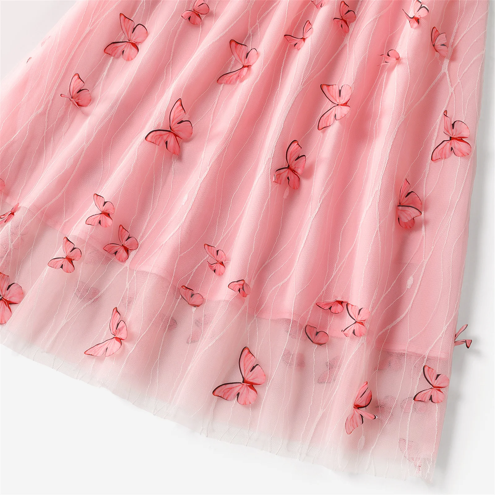 PatPat/розовое платье с круглым вырезом и оборками, без рукавов, с аппликацией в виде бабочек, Сетчатое платье для мамы и меня