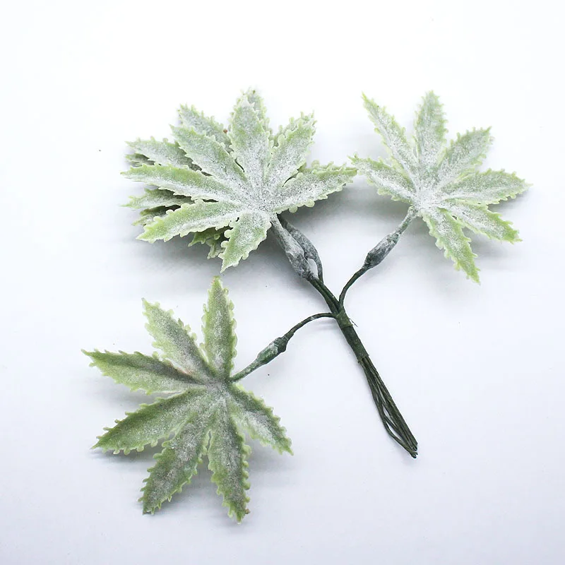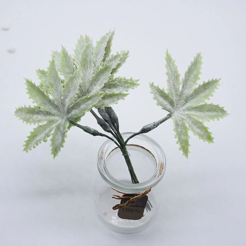 Листья изготовлены из пластика, окрашены и распылены белым порошком.
