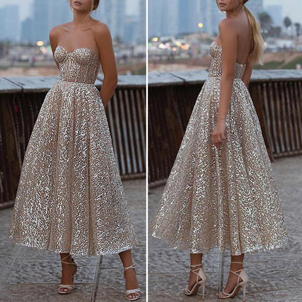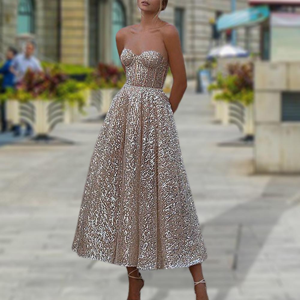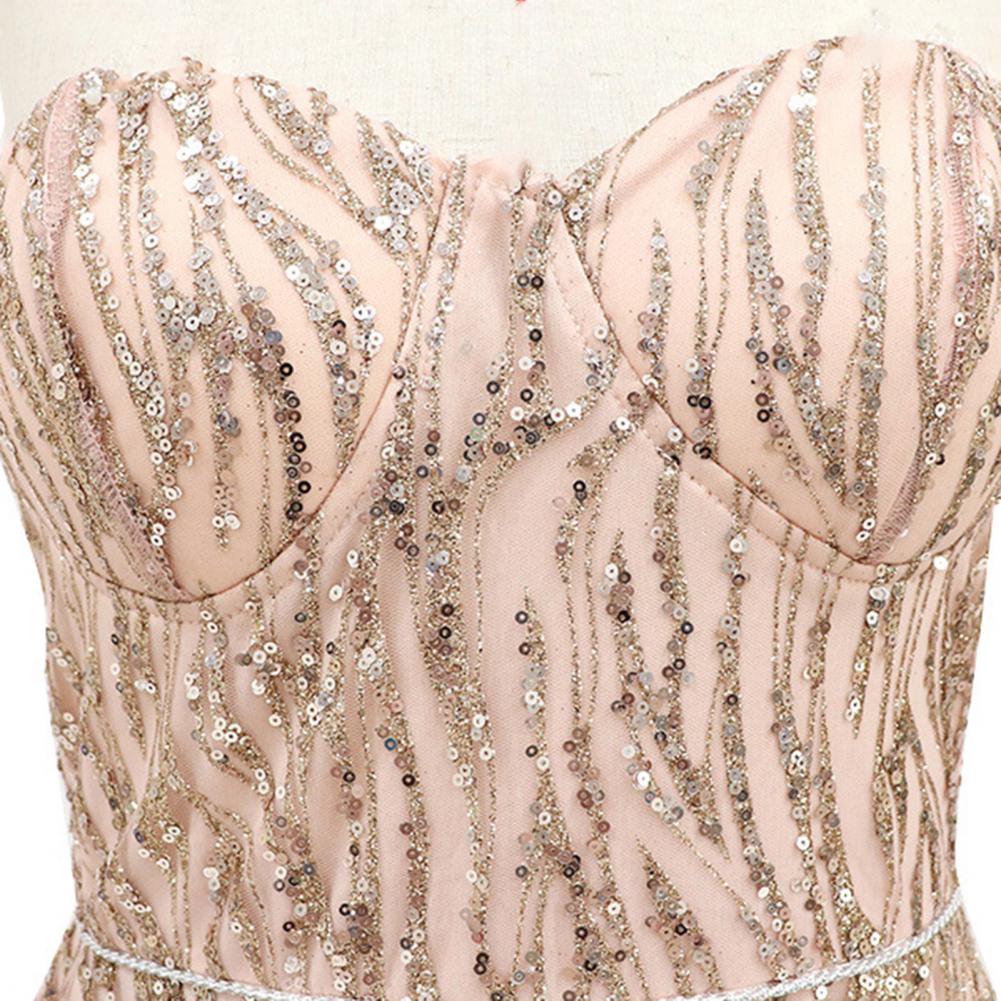 Дизайн с низким вырезом и открытыми плечами придает вам сексуальный вид. Дизайн с блестками делает вас очаровательными и привлекательными в вечерние дни.