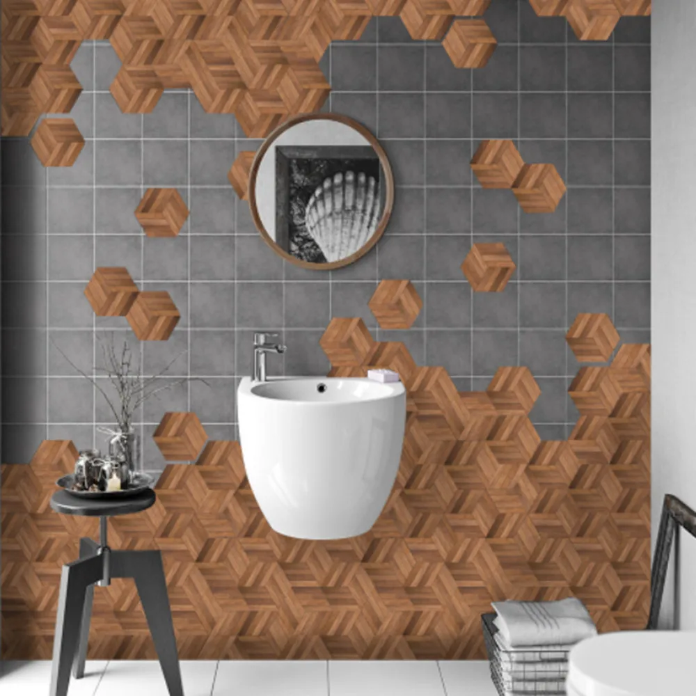 10 шт. Hickory текстура Шестигранная наземная наклейка s Водонепроницаемая самоклеющаяся Настенная Наклейка