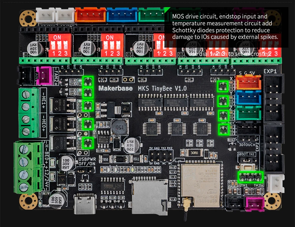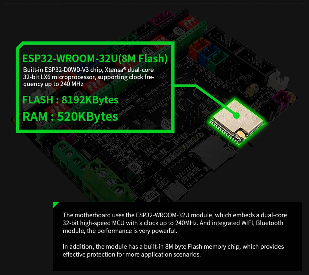 MKS TinyBee V1.0 3D принтер материнская плата ESP32 WIFI MCU 32bit TFT экран wifi функция веб-управления Tmc2209 шаговый драйвер