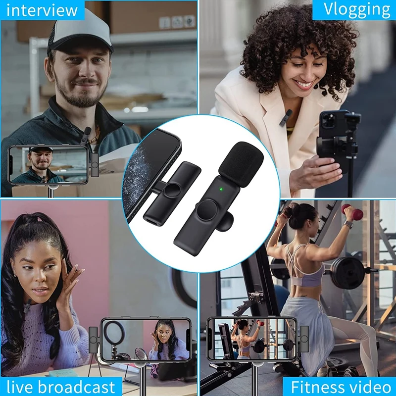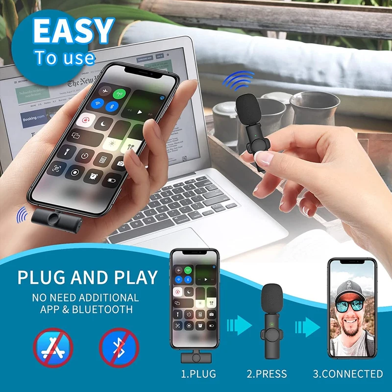Беспроводной микрофон Lavalier для iPhone, Android, Беспроводная микрофонная запись, предназначенная для Youtube / Facebook Live, создателей TikTok, Vlog, Blogger, Podcast, интервью и других любителей видеозаписи. Автоматическое интервью-синхронизация, снижение уровня шума, нет необходимости в приложении или bluetooth