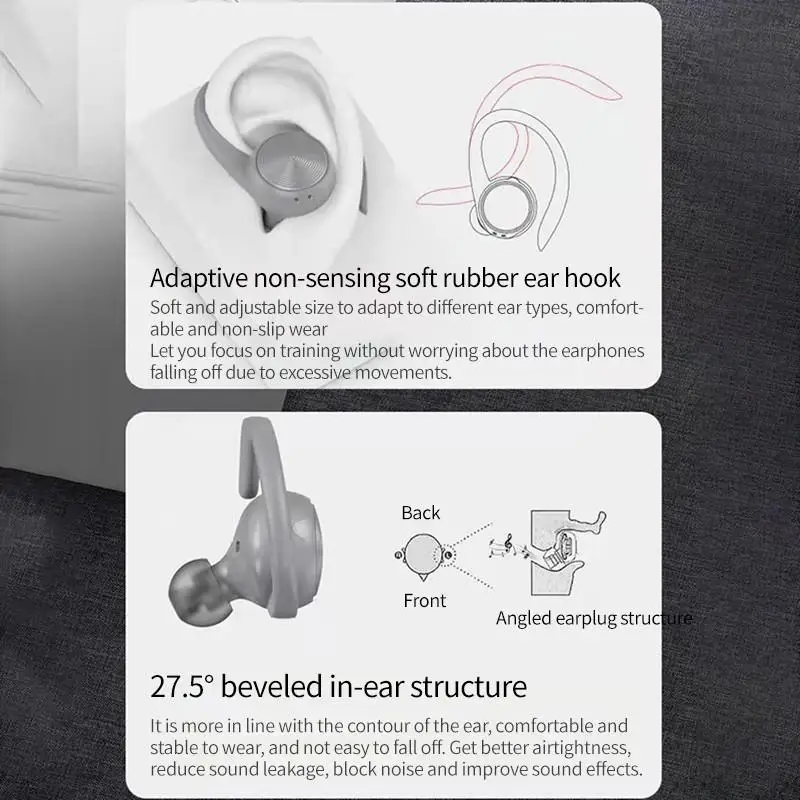 2, 500mAh charging case can full charge 2 earphones around 5 times, offer more 36Hours music time