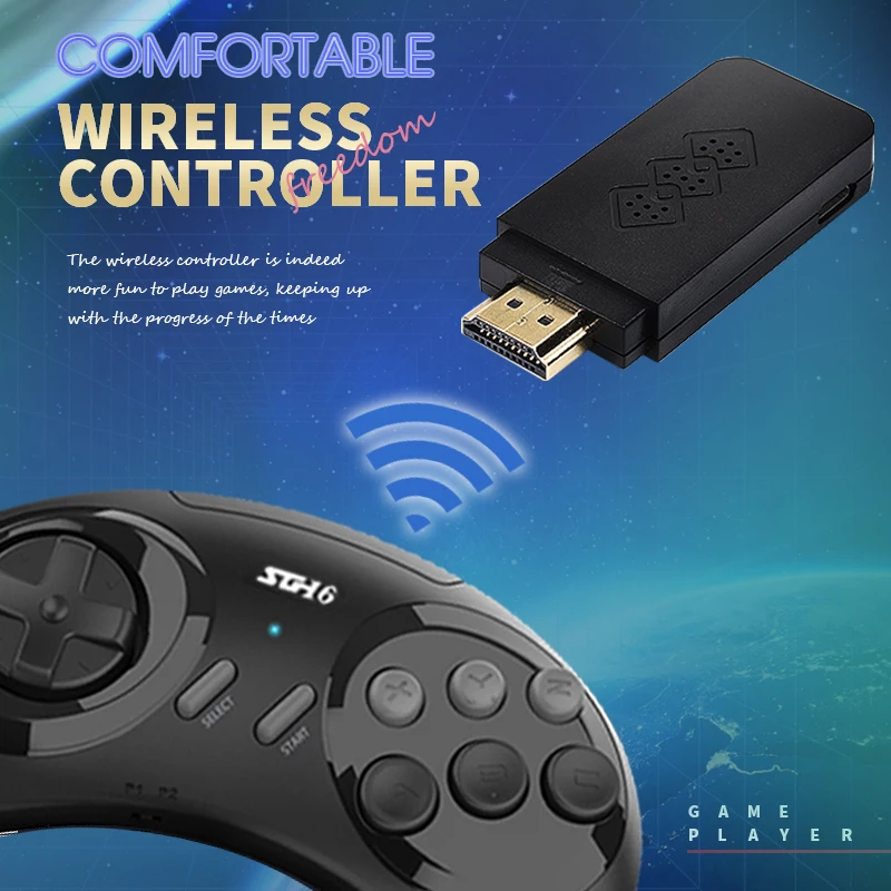 Оснащен двумя беспроводными игровыми контроллерами. Поддержка до 2 игроков одновременно, вы можете дистанционно управлять и наслаждаться игрой на диване с семьей или друзьями