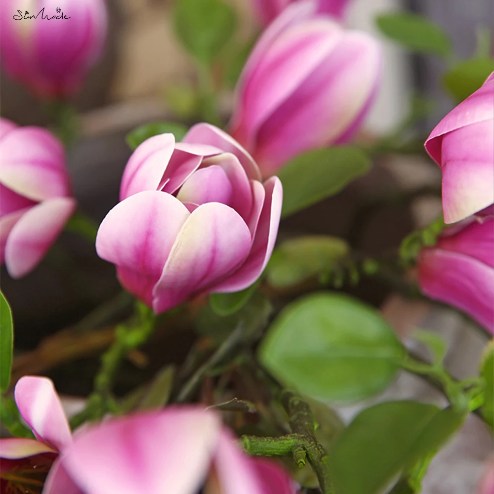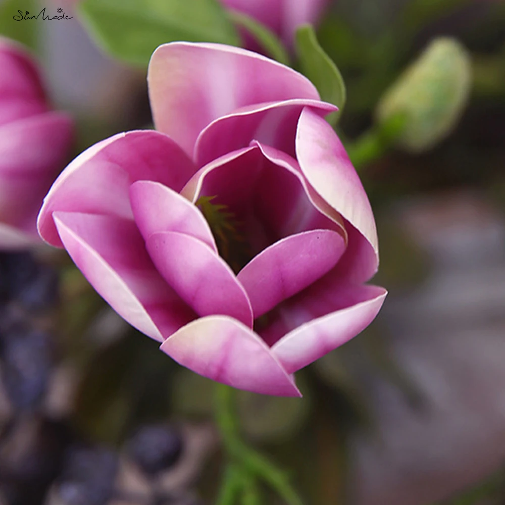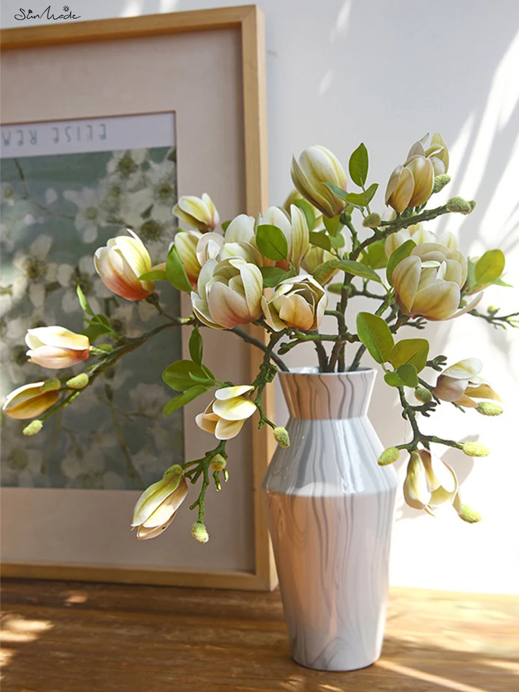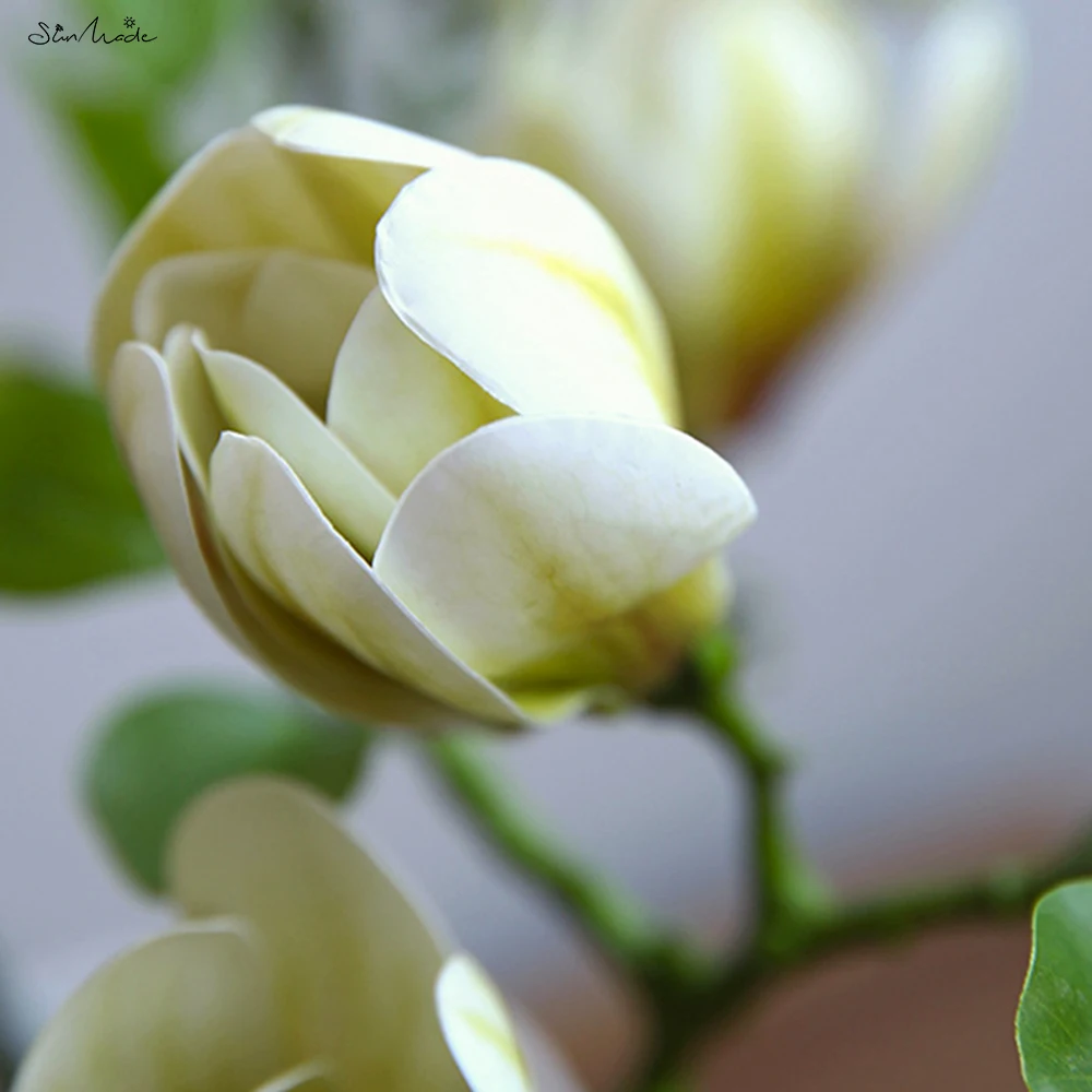 Пасторальный бутон магнолии ветка с зелеными листьями латекс искусственные цветы