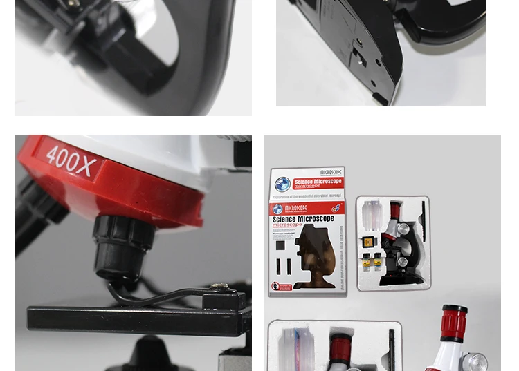 Детский микроскоп, набор, научная лаборатория, LED 100X 400X, биологический микроскоп для дома, школы, развивающие игрушки, детские оптические инструменты