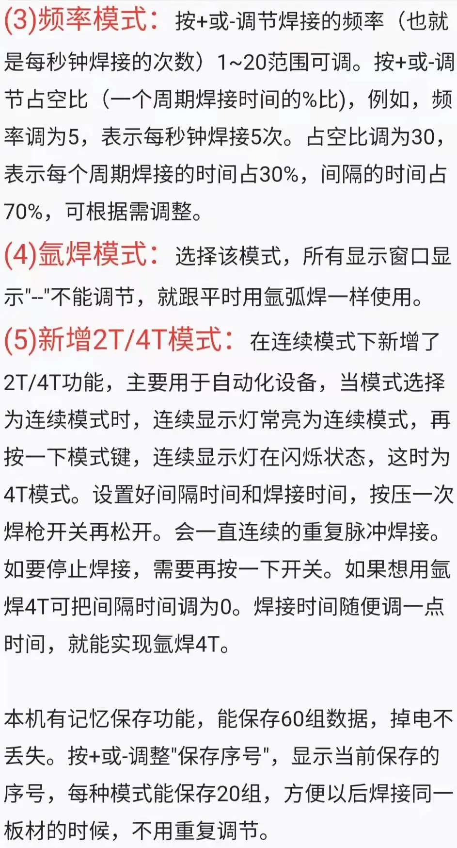 Сварочный ток можно отрегулировать до максимума (если он не является особенно тонкой пластиной), и только время сварки необходимо отрегулировать в соответствии с толщиной пластины. Сварка с высоким током в короткие сроки может эффективно уменьшить потемнение и деформацию. Так как каждый припой выводит одинаковую мощность, припой соединяется равномерно по размеру и глубине. Делает сложные методы сварки более легкими и подходящими для новичков.
