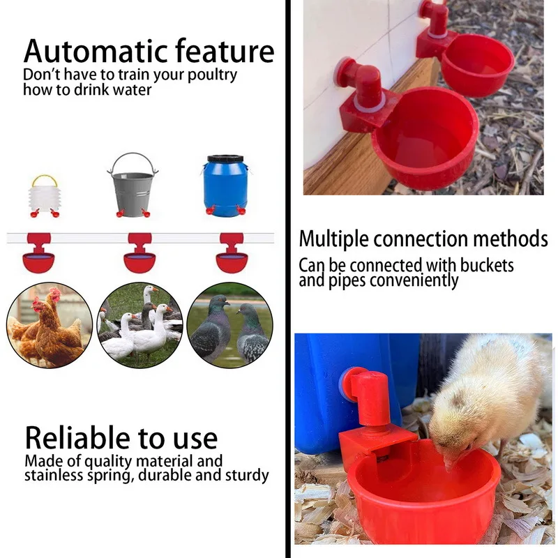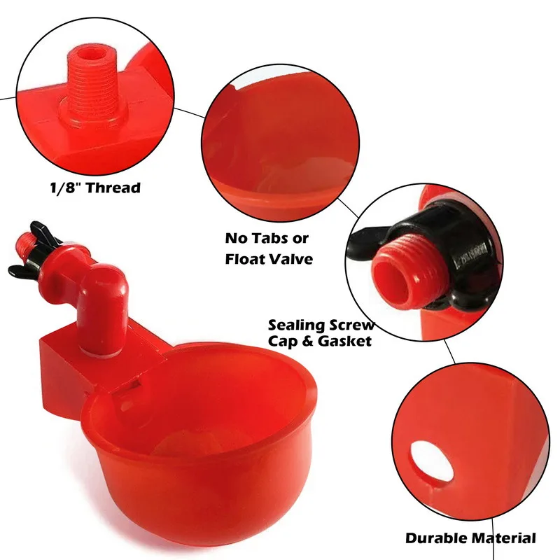 4. Широкий спектр использования: питьевая чаша спроектирована с большим размером чашки, прибл. 3 дюйма в диаметре чашки, миски подходят для курицы, утки, индюков, птиц и так далее, они будут вашими практичными и полезными предметами.