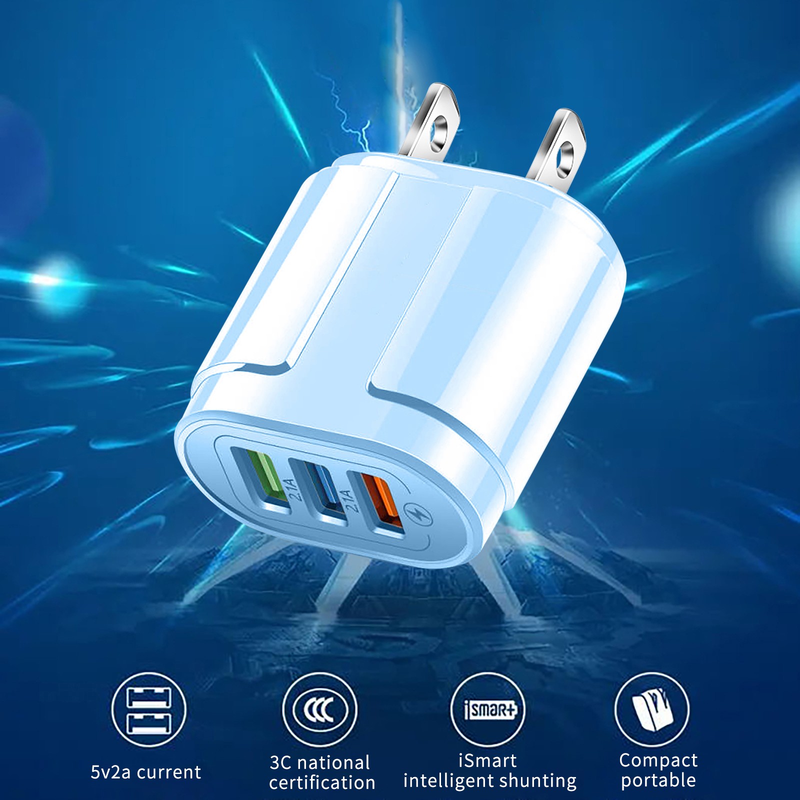 3 ports: The product is equipped with 3 USB charging ports to provide charging
