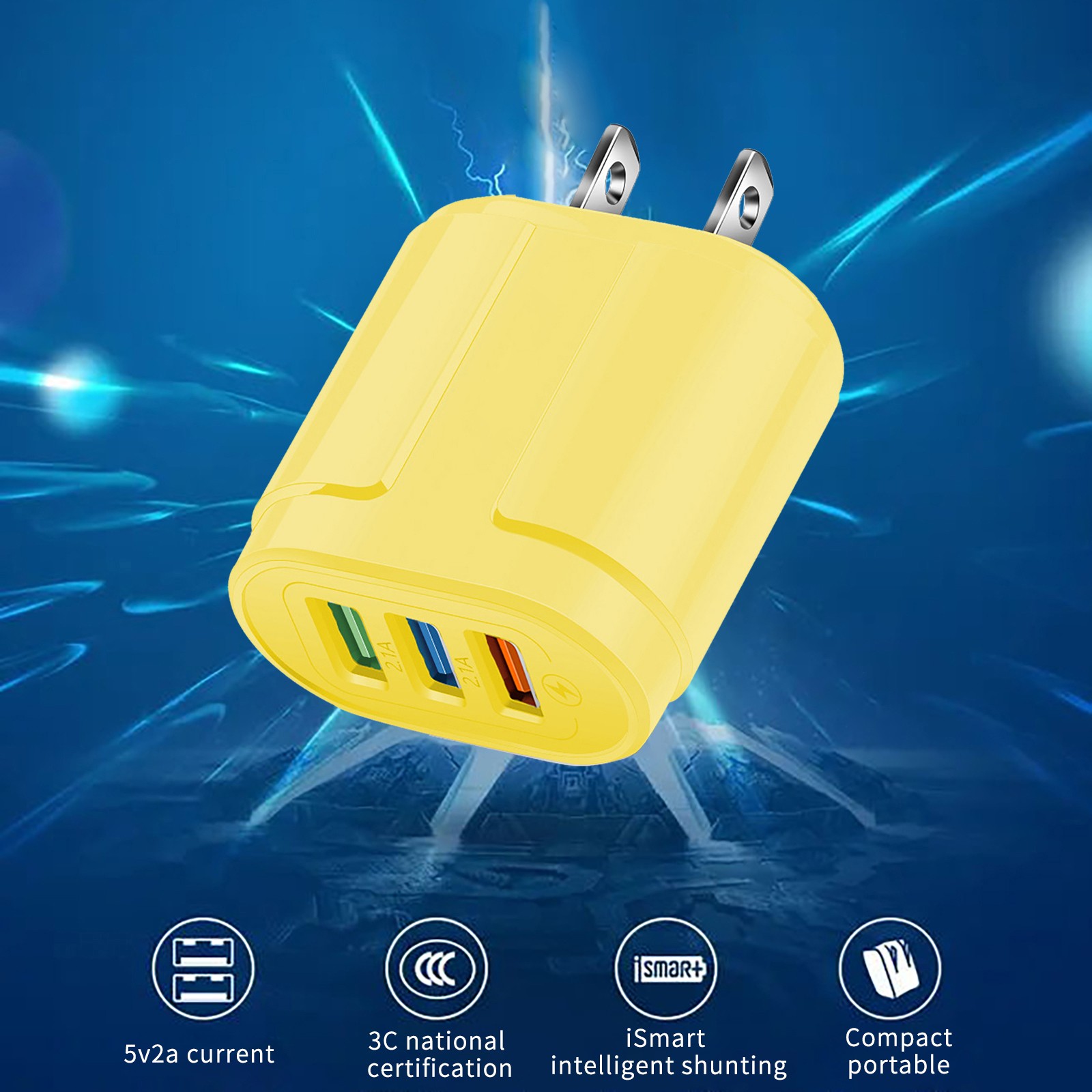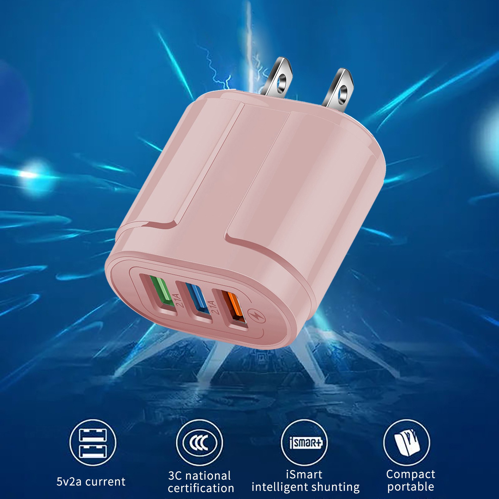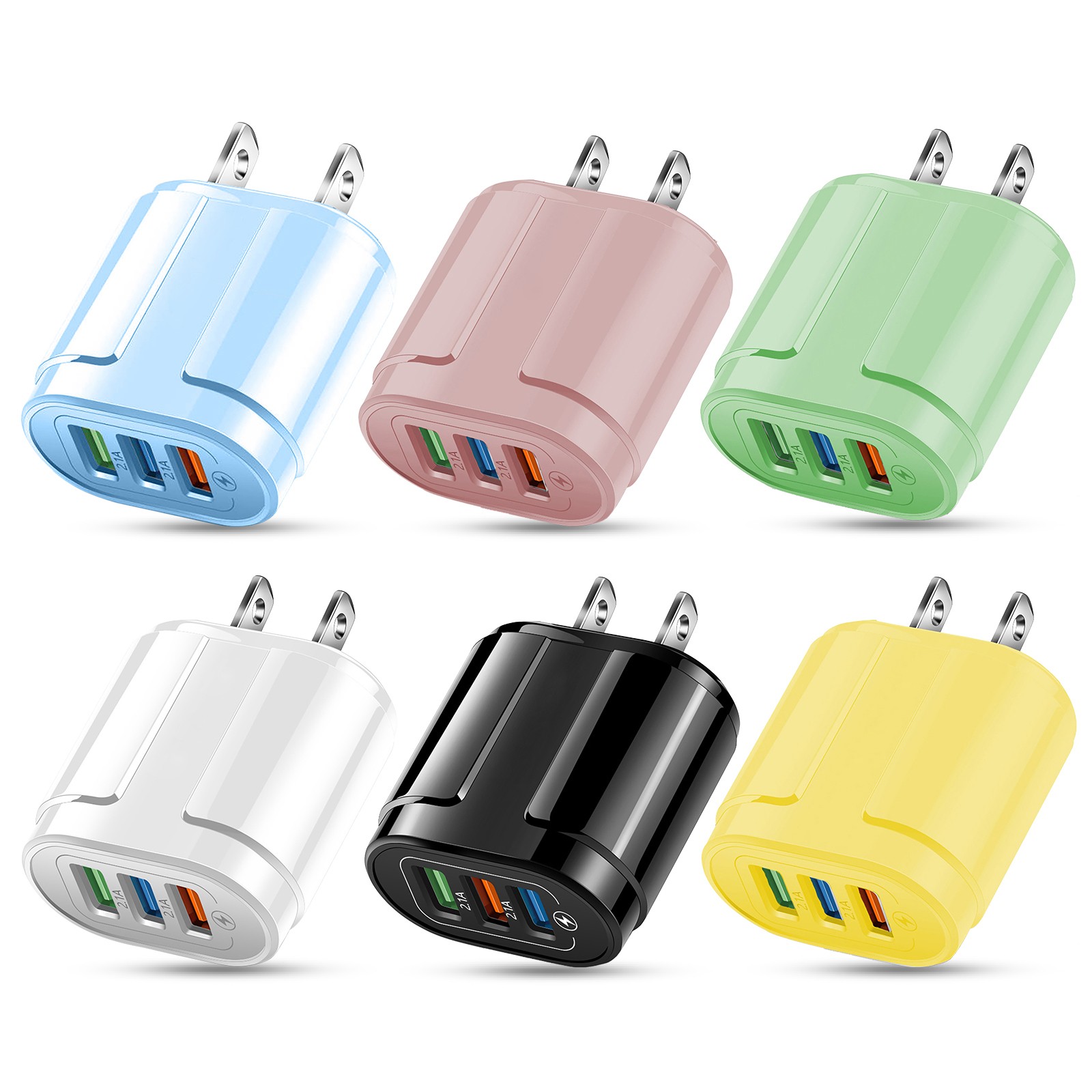 3-port USB charging head Macaron color matching charging head Portable USB charging head