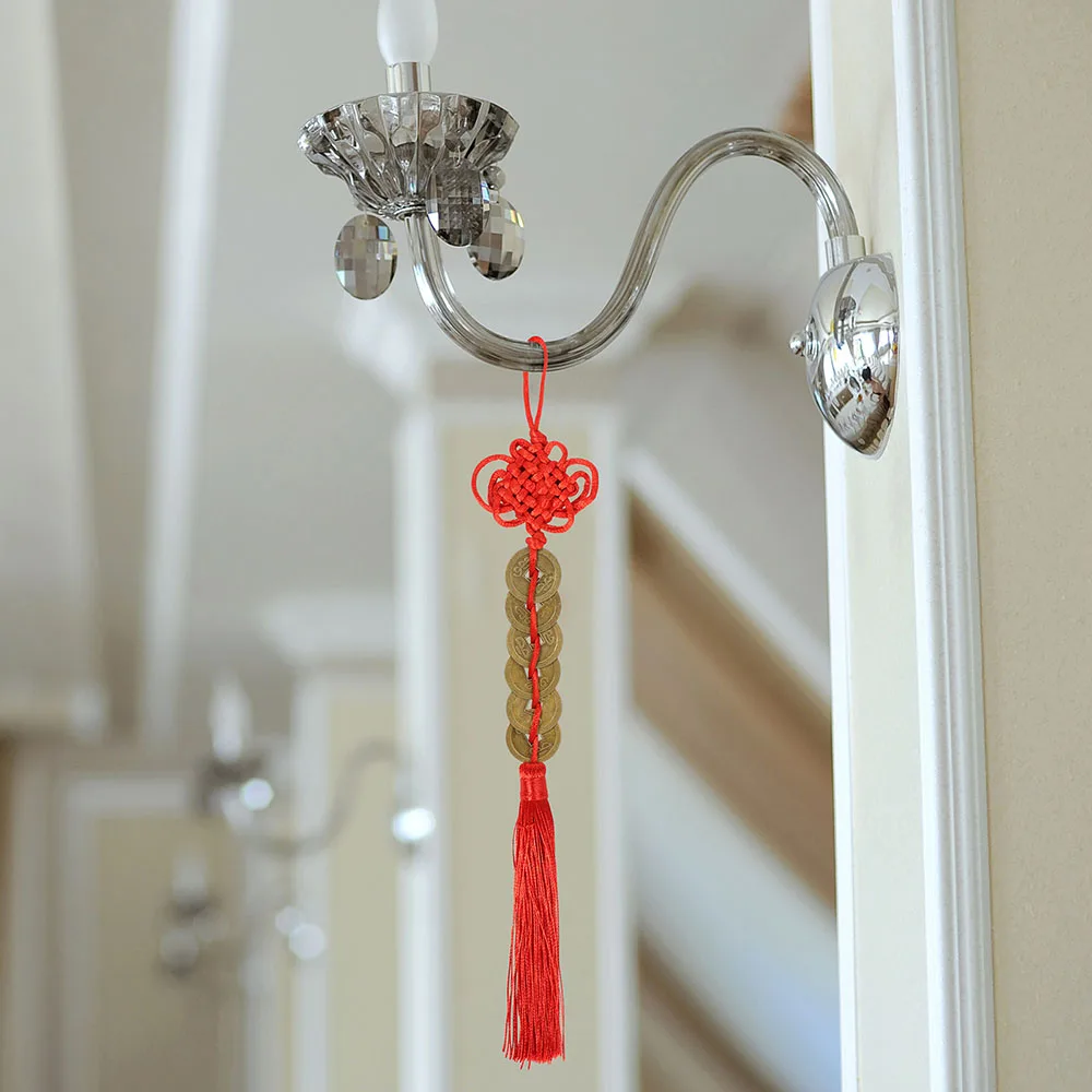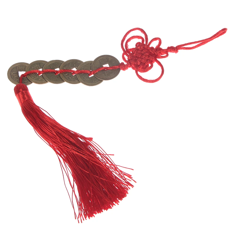 6 медных монет богатство успех китайский узел красная веревка фэн шуй счастливые свадебные принадлежности домашний настенный дверной подвесной кулон украшение
