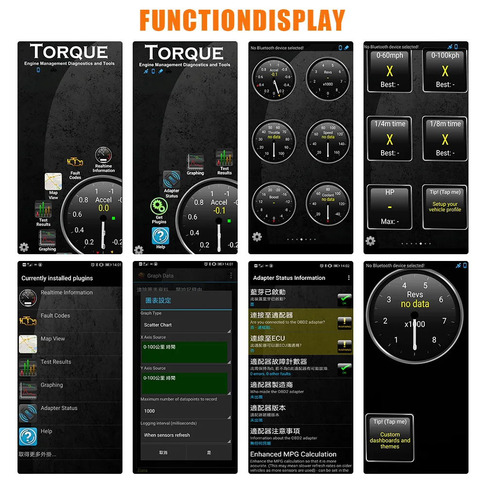 Чтение диагностических кодов неисправностей, как общих, так и конкретных производителей, и отображение их значения (более 3000 общих кодов в базе данных).