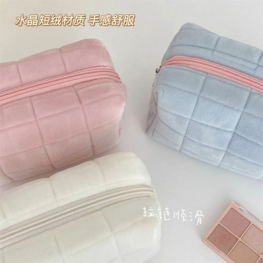Однотонная женская косметичка, большая подушка, органайзер для макияжа, корейская мода, косметический чехол, дорожный клатч
