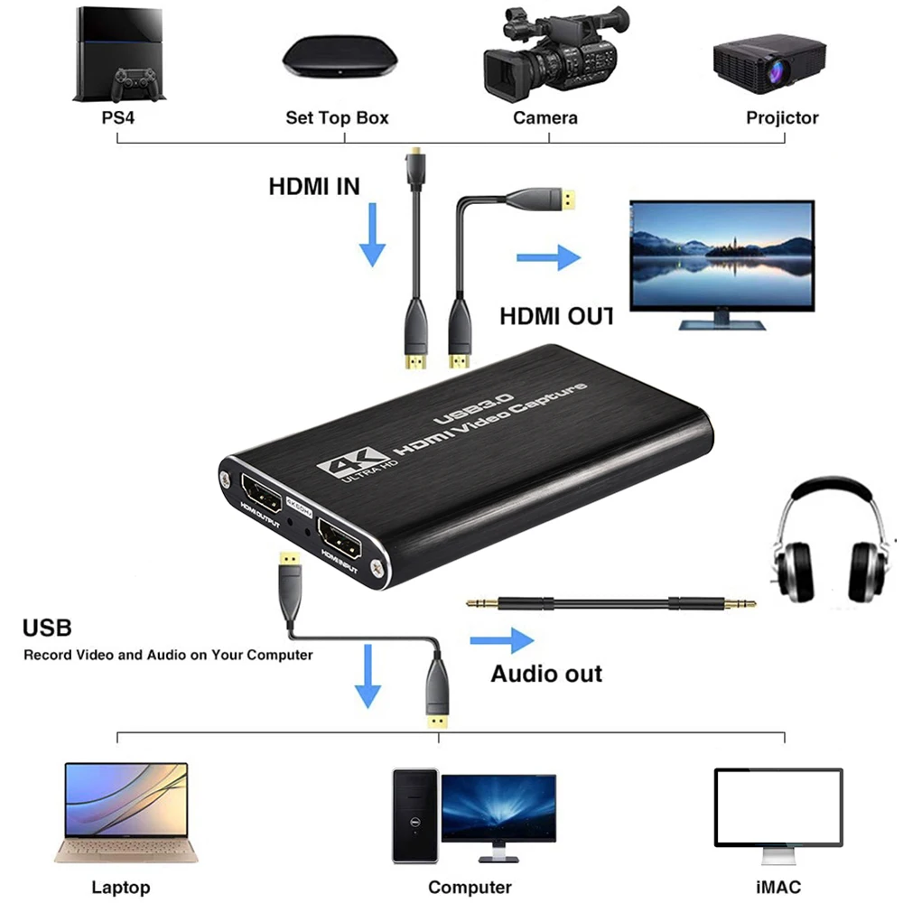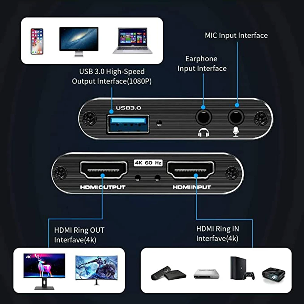 Карта видеозахвата 1080P 4K 60fps USB3.0 порт аудио карта для Youtube игр PS3/4 прямые трансляции видео запись конвертер