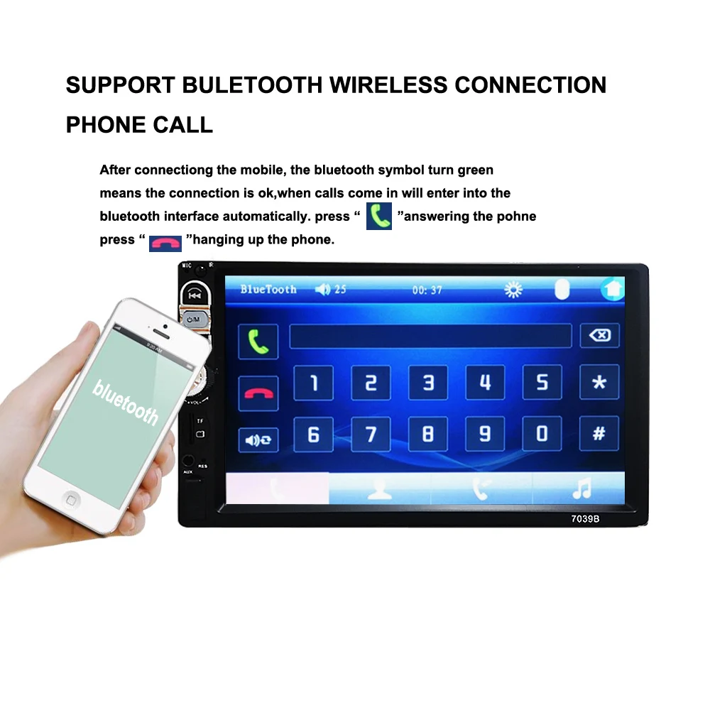 9. Функция Bluetooth: Встроенный Bluetooth для беспроводной потоковой передачи звука, встроенный микрофон для громкой связи. Решить вашу проблему вызова, когда вы едете. Что еще? Подключите телефон к функции bluetooth, поднимите звуки вашего GPS и ваших любимых песен в автомобильном динамике.
