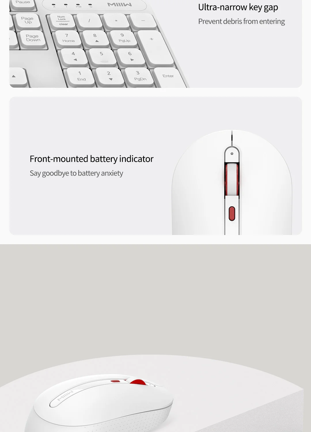 Xiaomi miiiw мышь и клавиатура Набор беспроводной беззвучный 2 вида цветов 104 клавиш 2,4g беспроводной приемник двойная коммутационная система для офиса