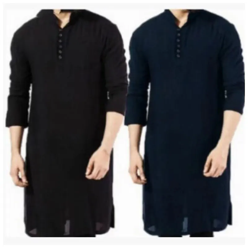 Summer Newest Arabic Style Fashion Simple Long Men's Shirt Solid Color Stand Collar Button Muslim Robe Islamic Abaya Sweater