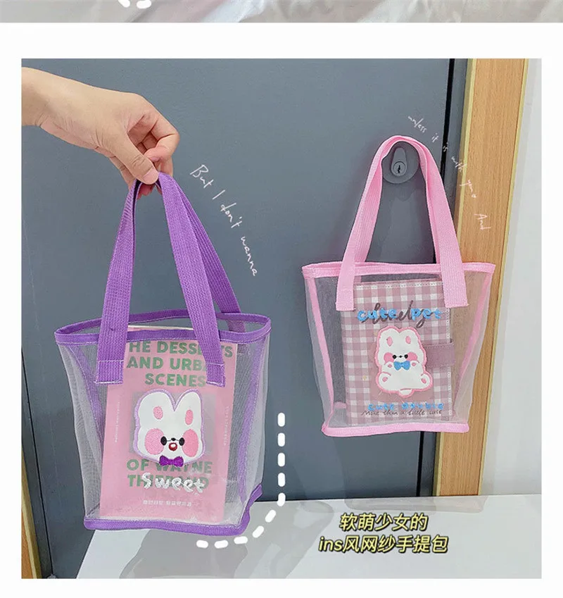 Женская сетчатая сумочка с мультяшным медведем и кроликом для девочек, Маленькая прозрачная сумка Kawaii, сумка для покупок, Летняя Пляжная Сумка Bolso Eco