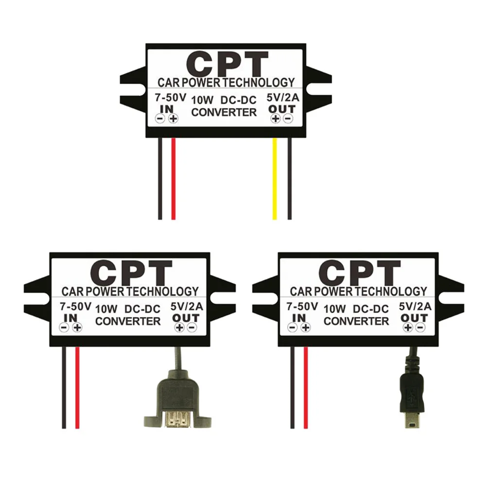 DC-DC DC 7 -50V to 5V 2A 10W Buck Converter Step Down Module Single Male USB Output Waterproof Power Adapter for Car