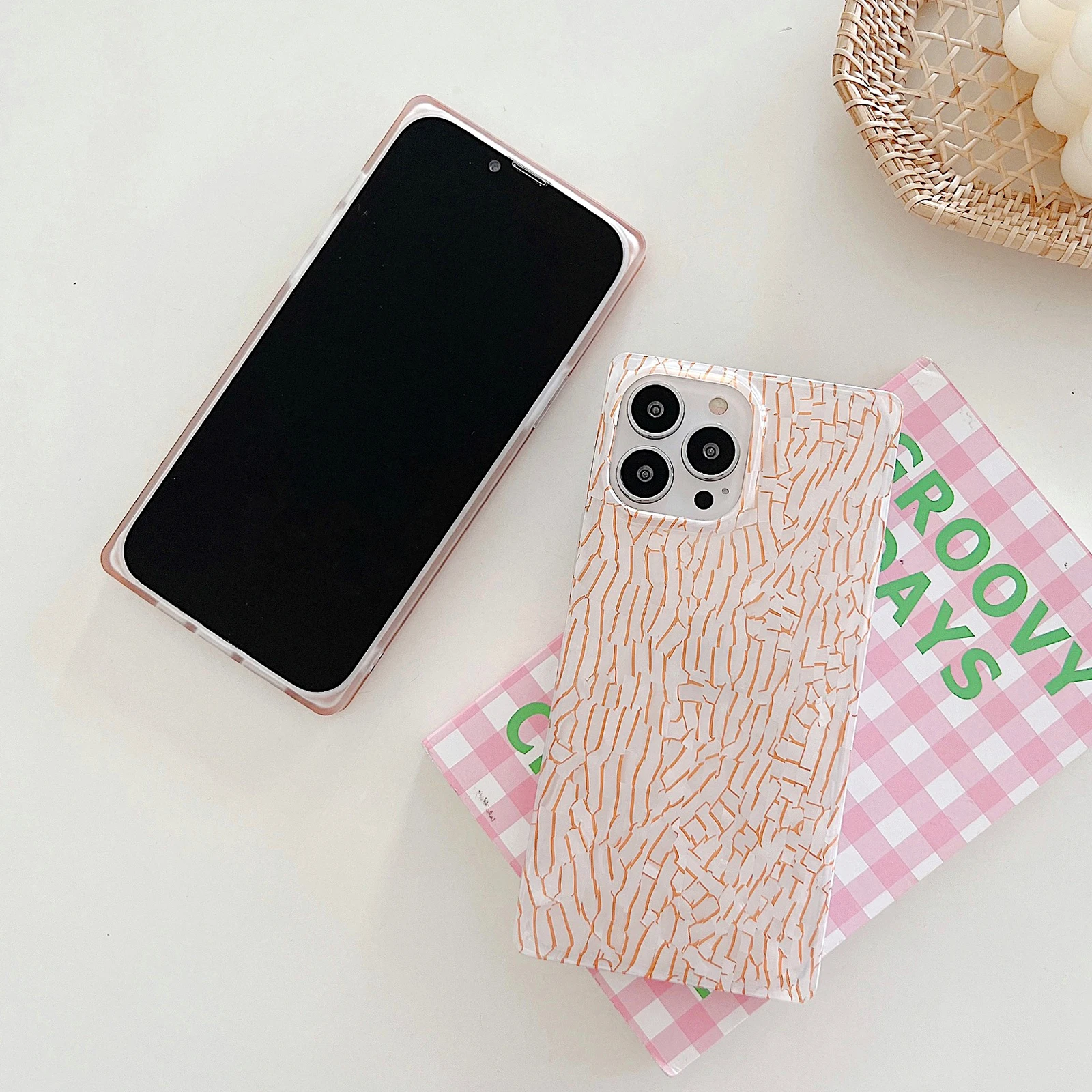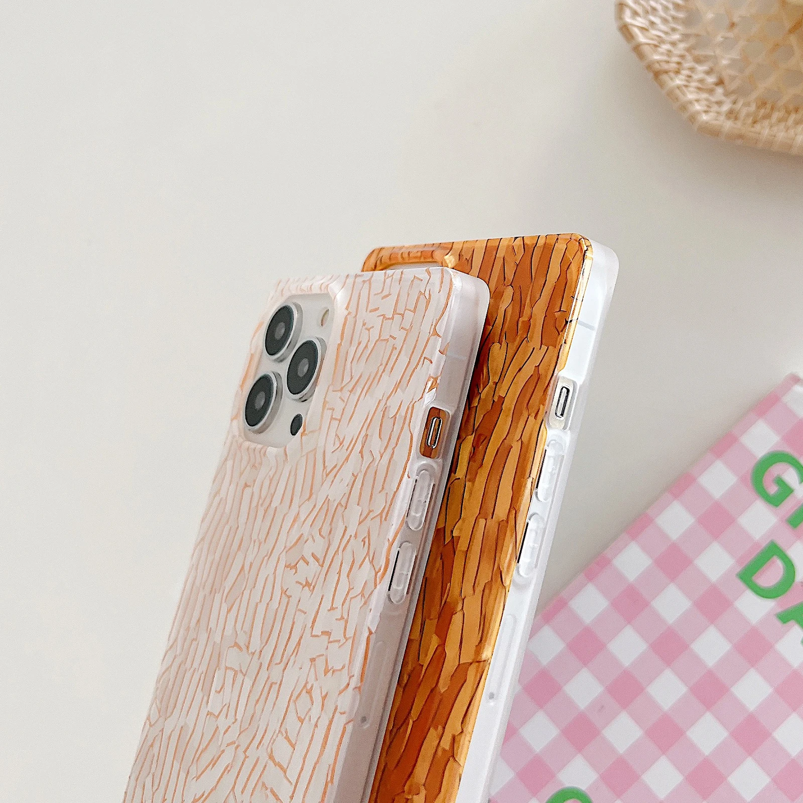 Ретро мечтательный камуфляжный чехол с изображением дерева коры для телефона iPhone 13 12 11 Pro Max Глянцевая Противоударная квадратная мягкая задняя крышка