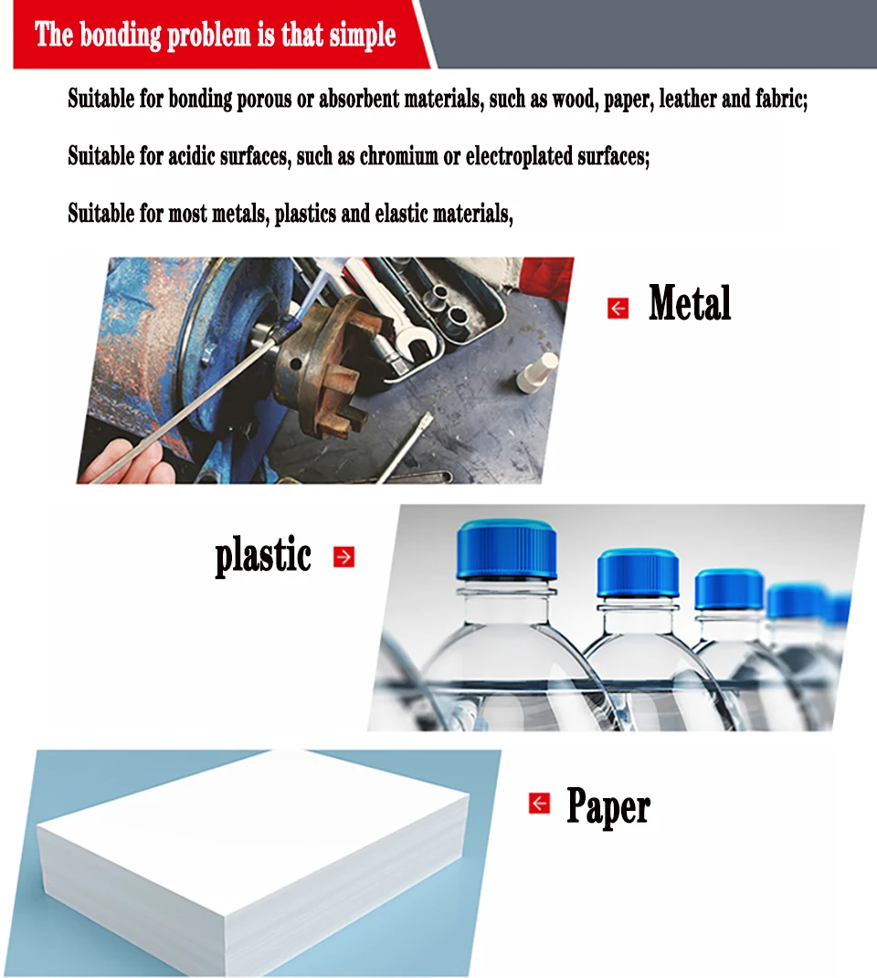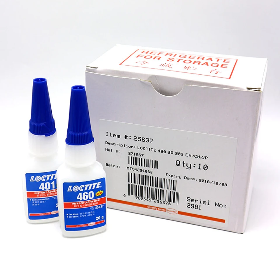 Loctite401:Универсальная, средняя вязкость, используется для пористых, кислотных материалов, таких как металлы, клинкеры, бумага, кожа, дерево, стекло, алюминиевые сплавы.