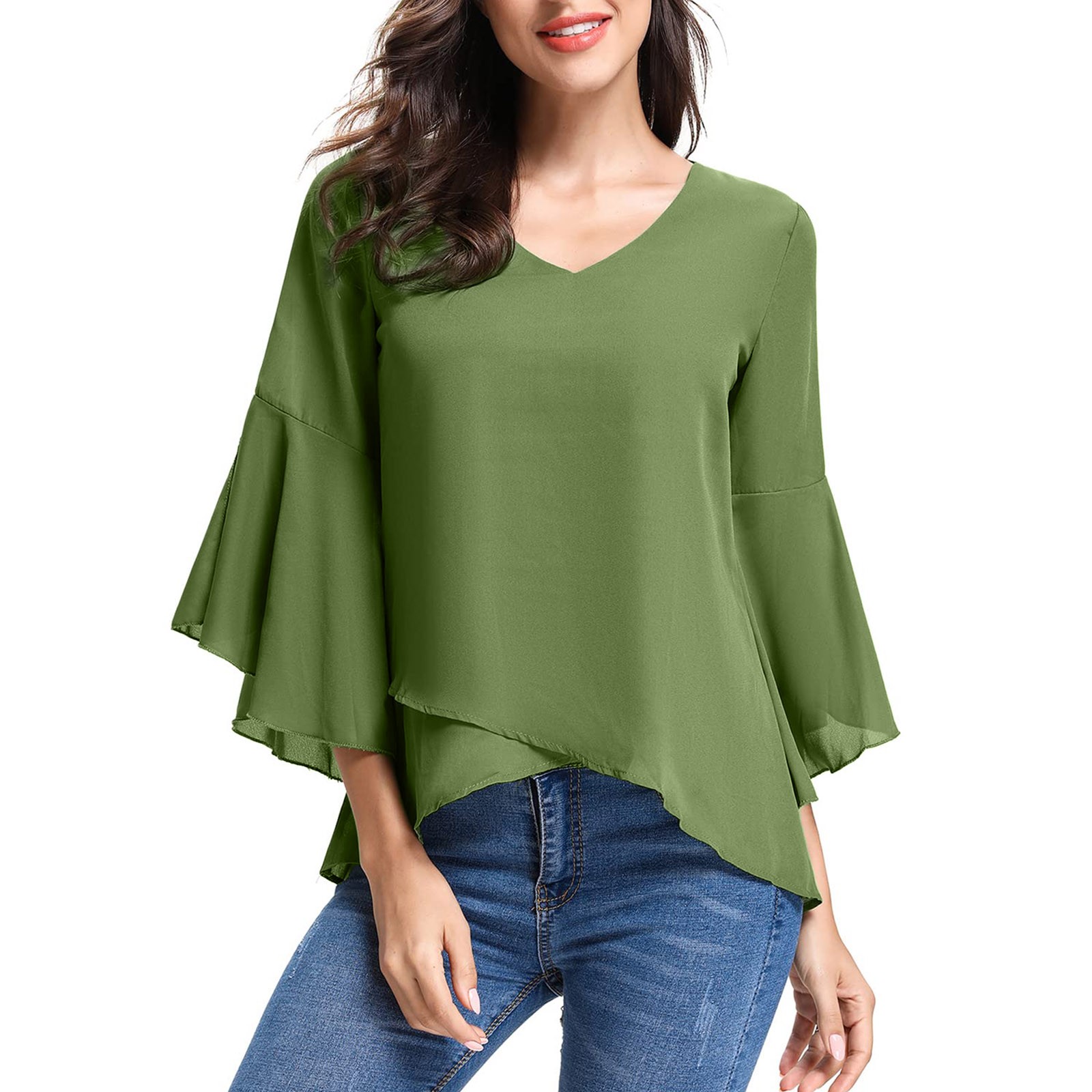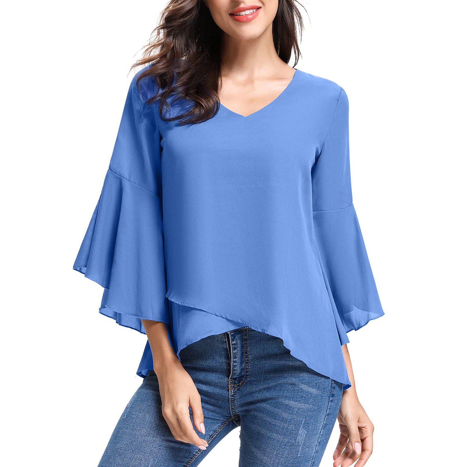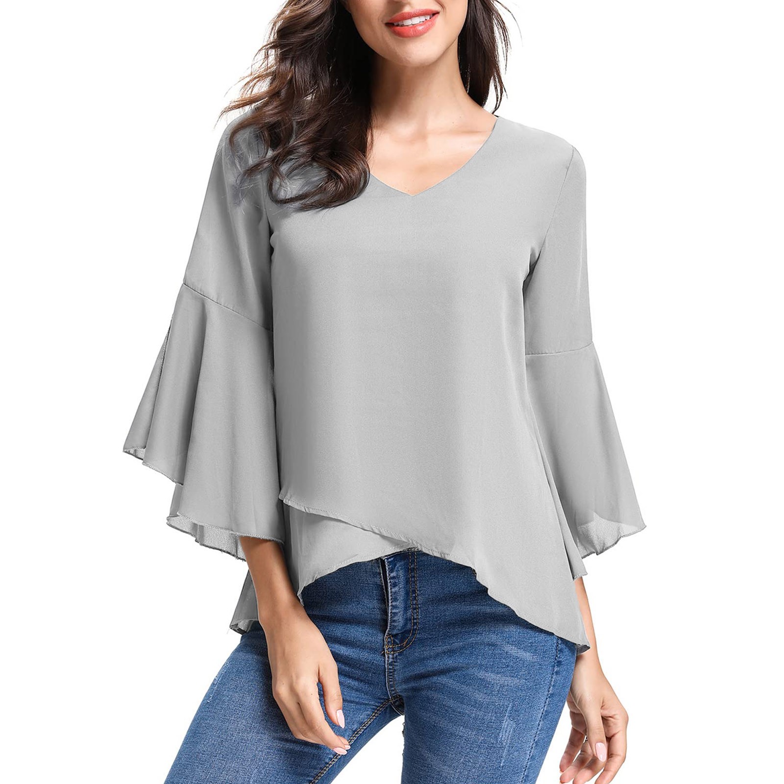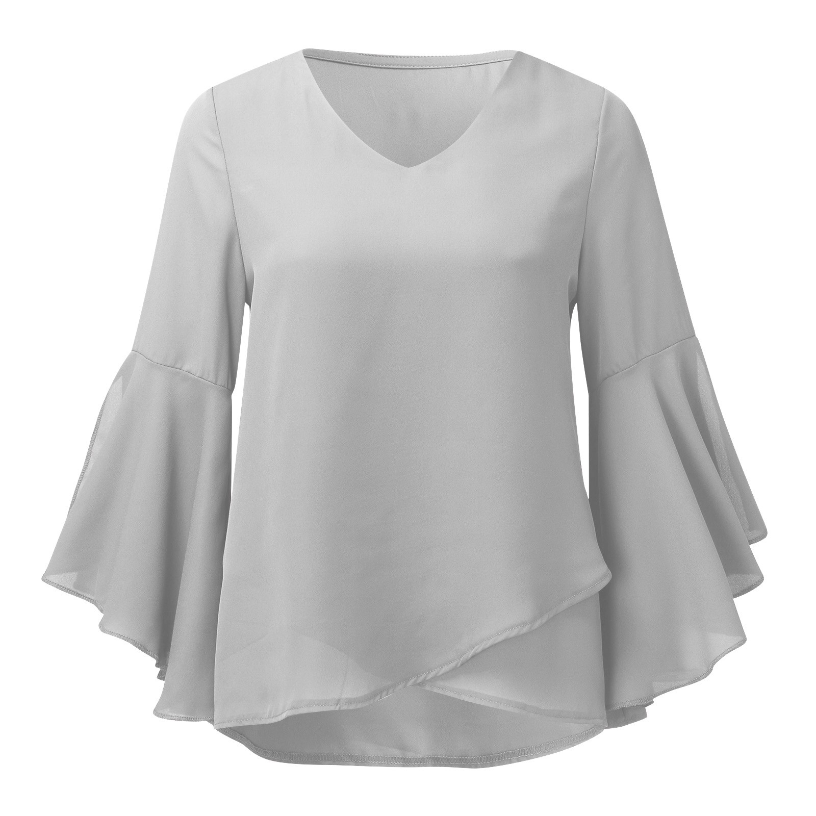 Женская шифоновая блузка с рукавами три четверти, элегантная Летняя туника с v-образным вырезом, модные женские блузки в стиле Харадзюку