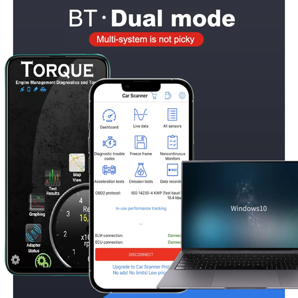 Поддерживает почти все программы адаптера ELM327 / ELM329 / OBDLINK.